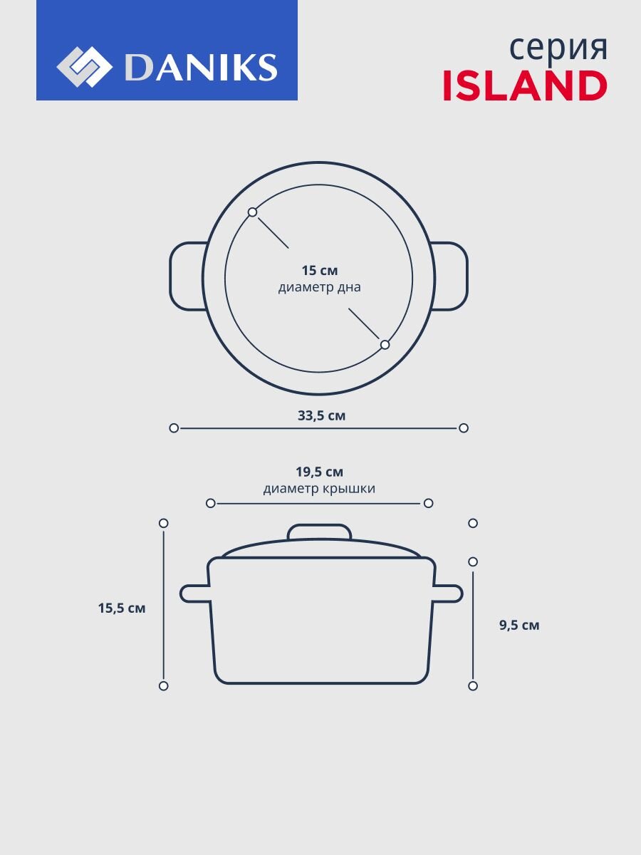 Каковы размеры и вес кастрюли Daniks Айленд 2.2 л?