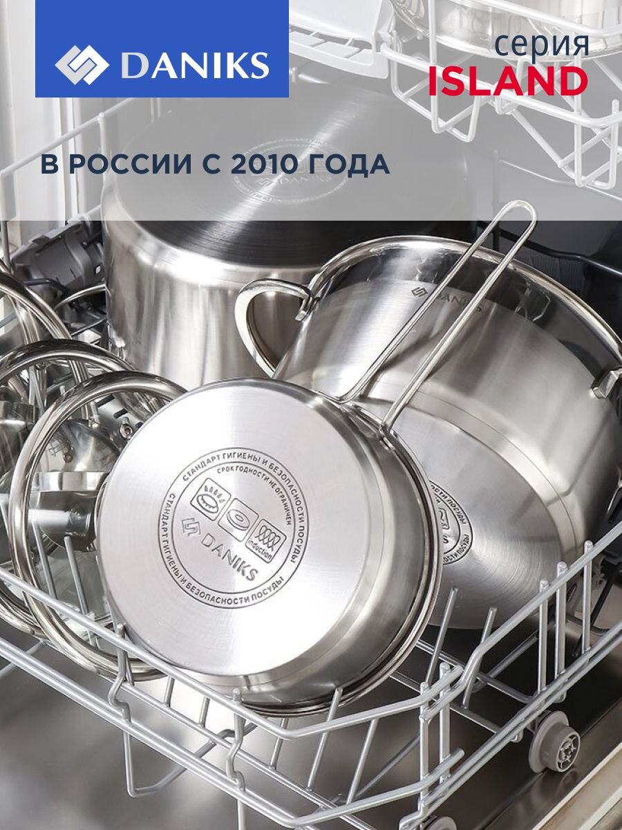Закажите кастрюлю Daniks Айленд по выгодной цене — получите универсальную посуду для любых плит с гарантией 12 месяцев. Успейте купить недорого кастрюлю для дачи или дома прямо сейчас!
