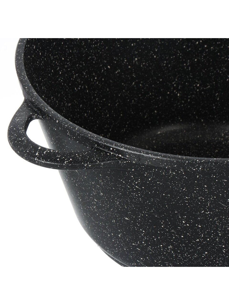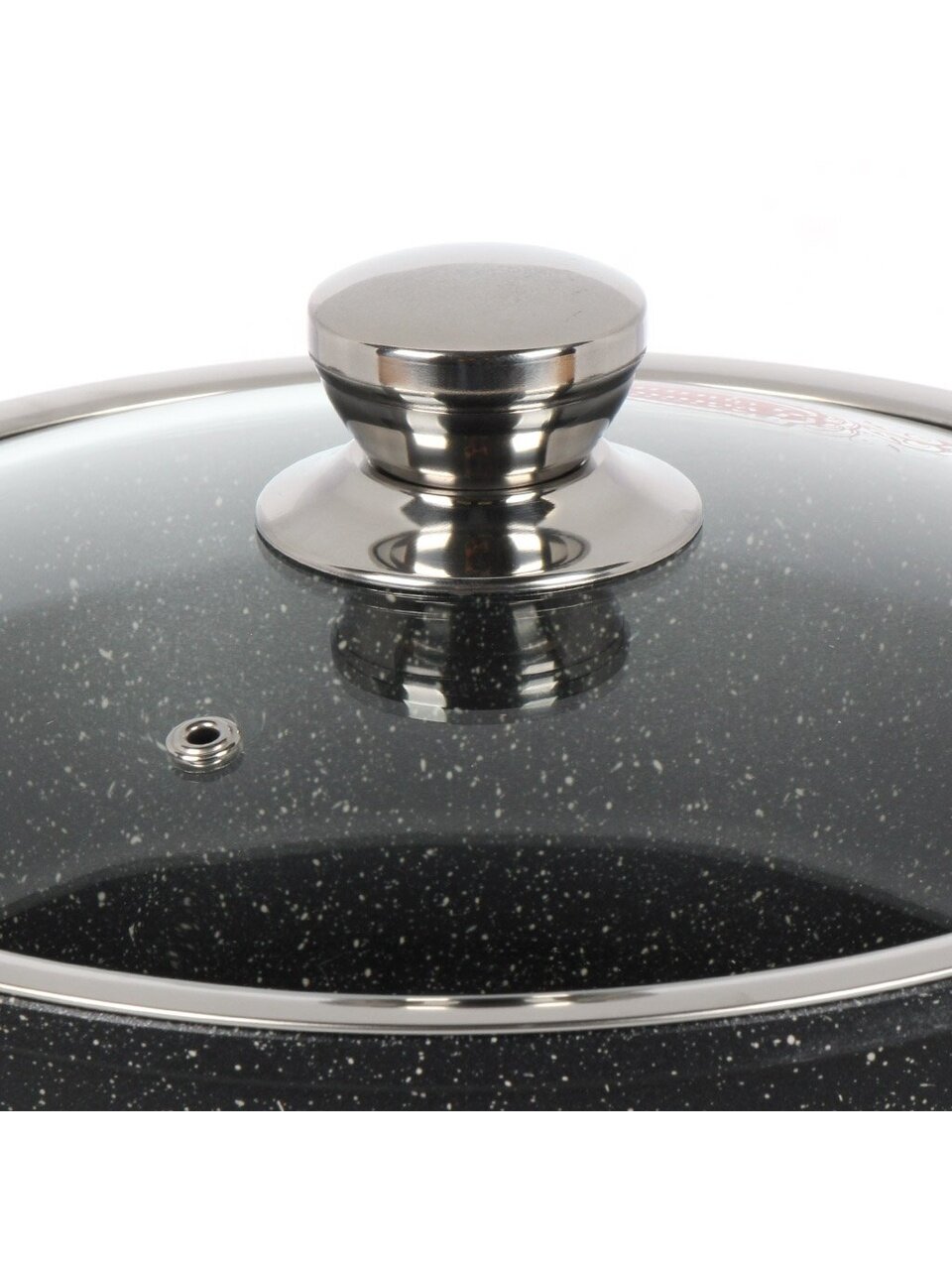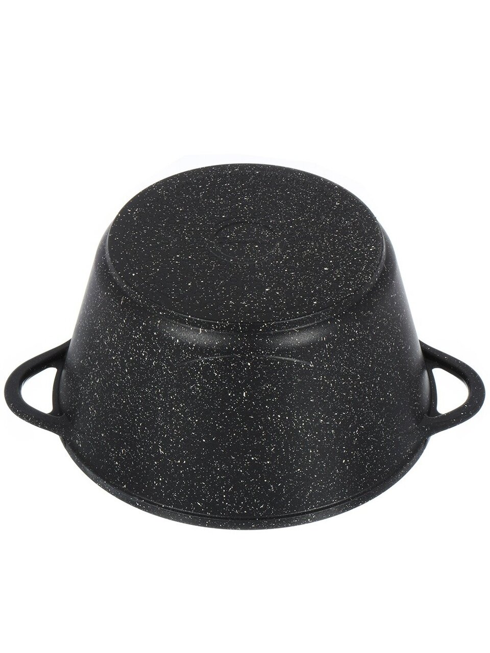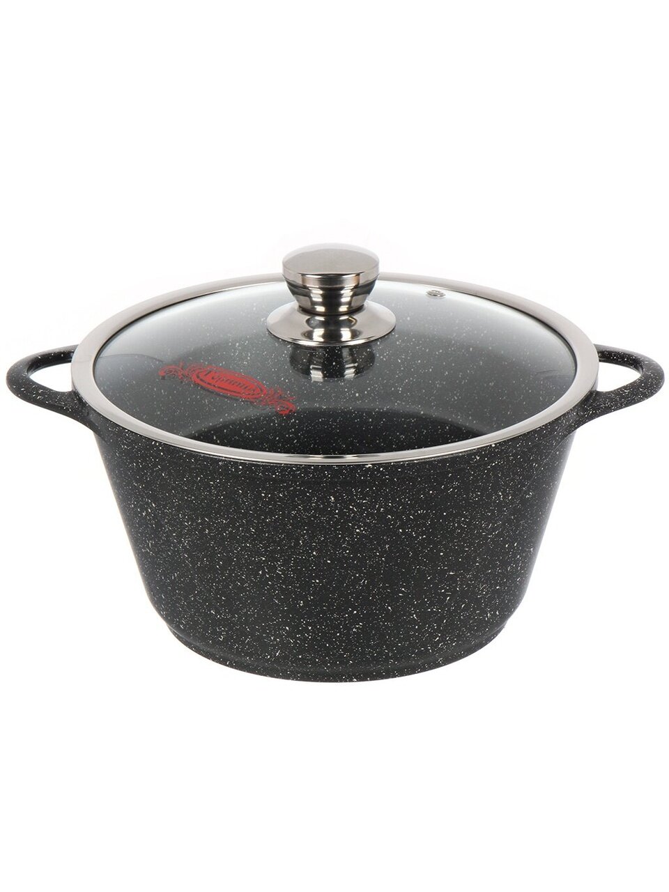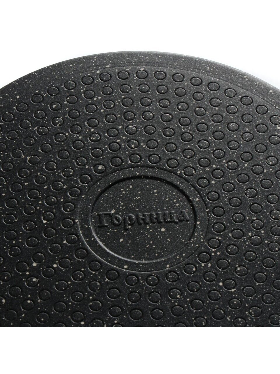 Кастрюля алюминиевая с гранитным антипригарным покрытием Горница Induction 5 л — оптимальный выбор для тех, кто ищет, какую кастрюлю выбрать для индукционной плиты или как выбрать кастрюлю для большой семьи. Благодаря прочному алюминию и толстому дну (5,5 мм), тепло распределяется равномерно, блюда не подгорают даже при длительном приготовлении. Стеклянная крышка с выпускным клапаном позволяет контролировать процесс и сохраняет сочность продуктов.
