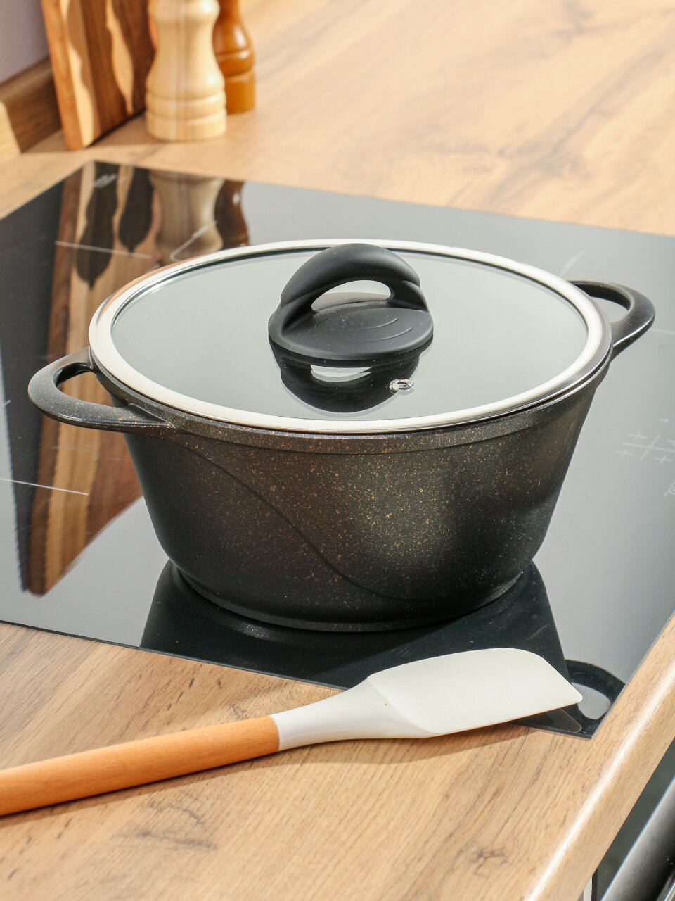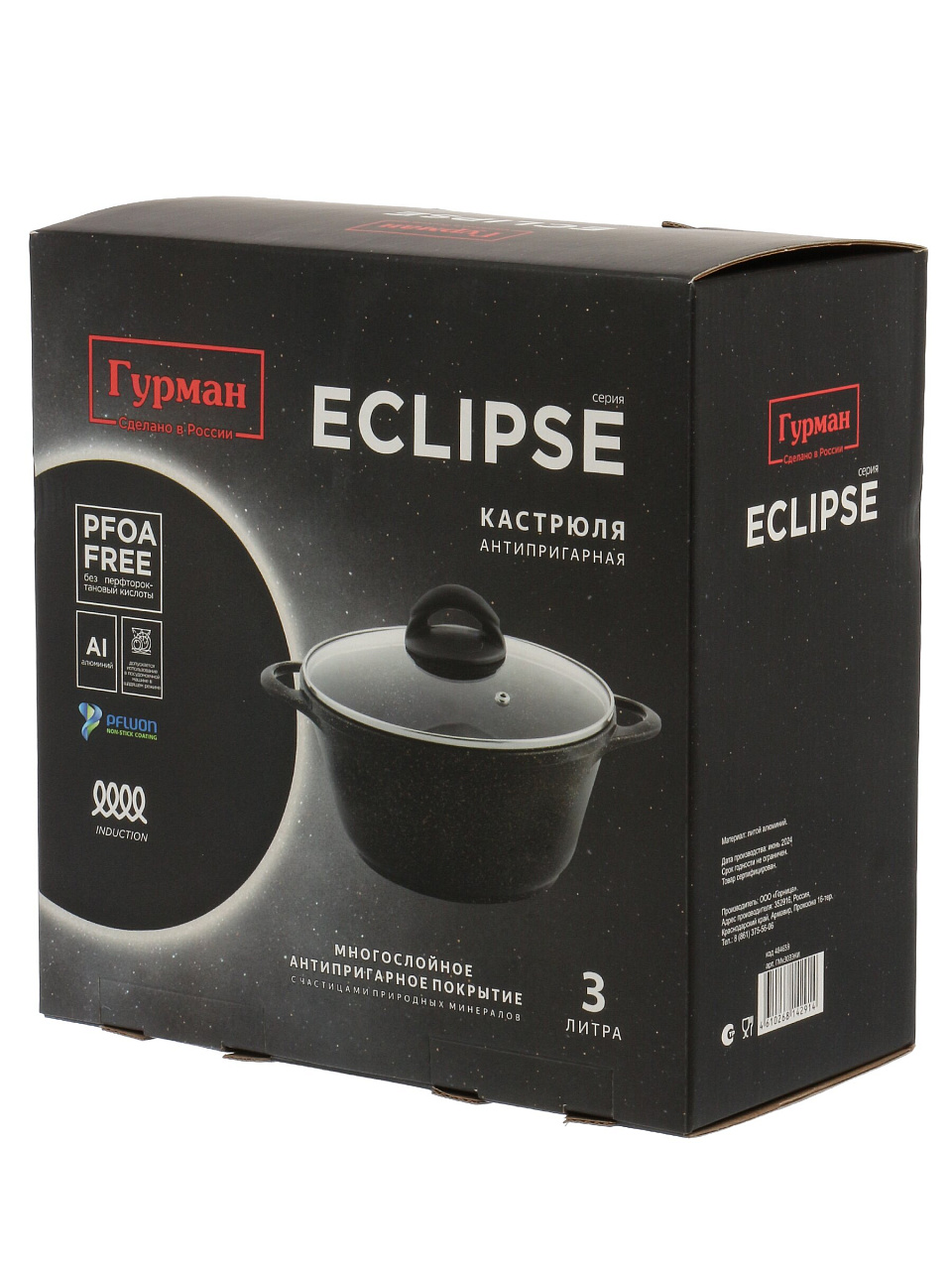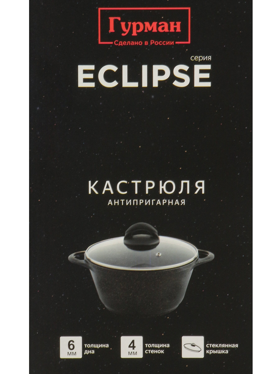 Кастрюля алюминиевая 3 л с гранитным антипригарным покрытием и стеклянной крышкой: идеальный выбор для индукции, дома и дачи. Гурман Eclipse — надежно, удобно, выгодно.