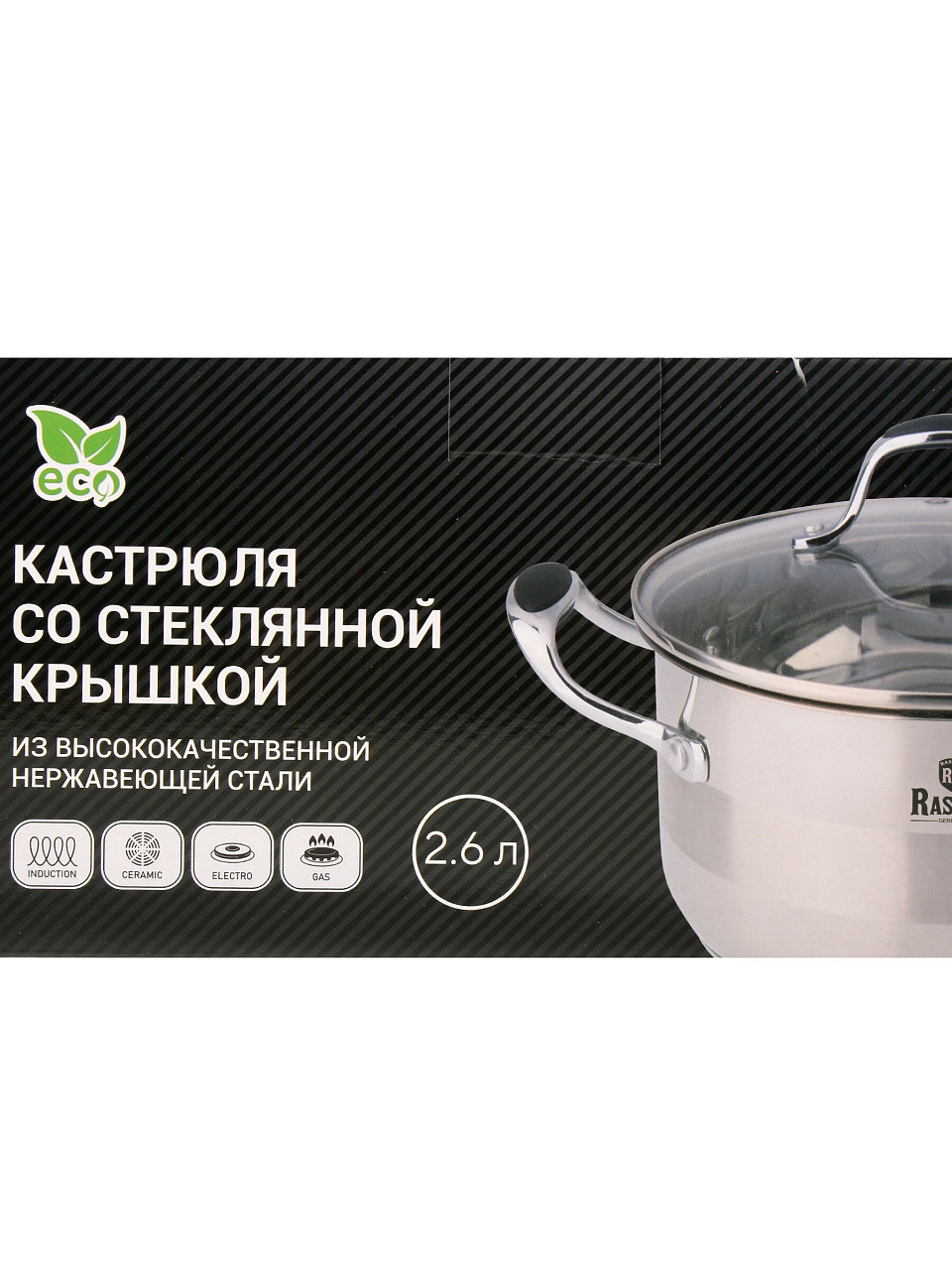 Кастрюля RasheL 2.6 л: нержавеющая сталь, стеклянная крышка, подходит для индукции и всех плит. Идеальный выбор для семьи и дачи — выгодно и удобно!