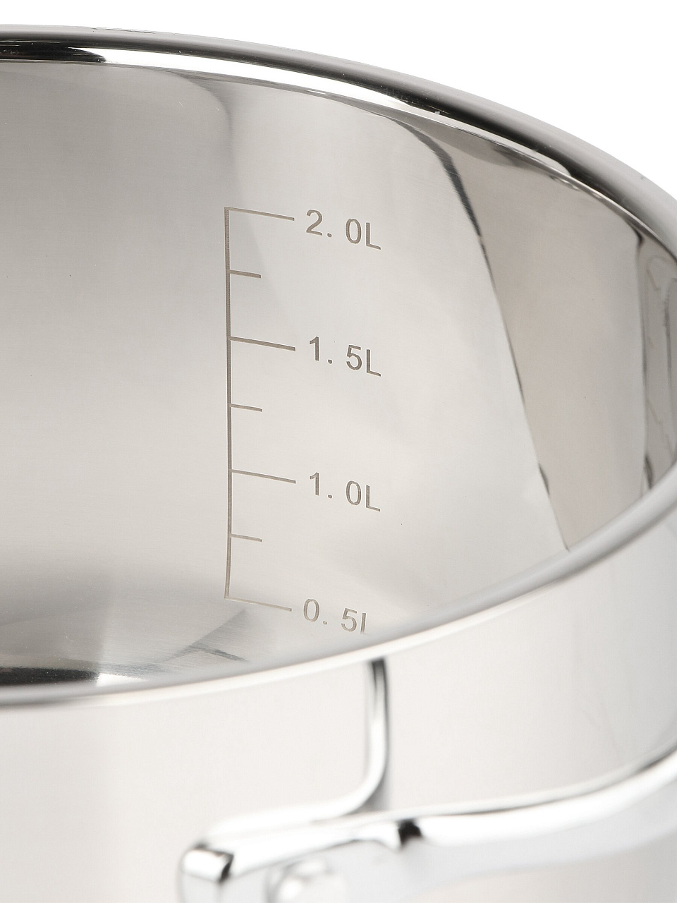Объём кастрюли — 2.6 литра (с маркировкой 2.5 л), что оптимально для приготовления 3-4 порций супа, борща или компота.
