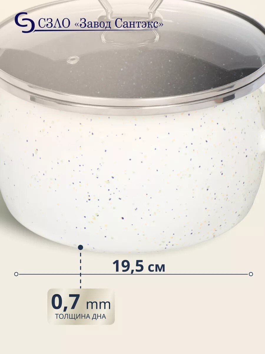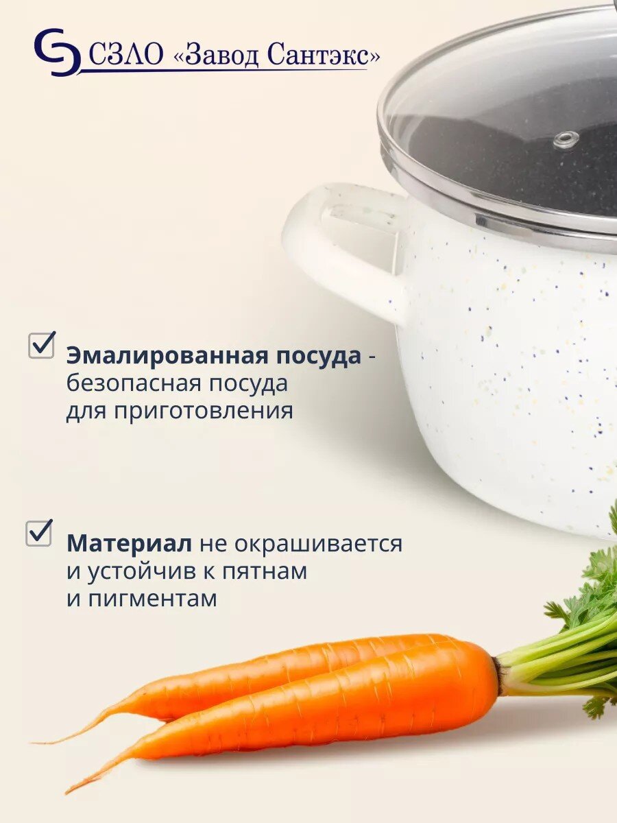 Кастрюля эмалированная сталь 4 л с крышкой из стекла — универсальное решение для дома и дачи. Индукционное дно, долговечность, стильный дизайн «Гранит цветной».