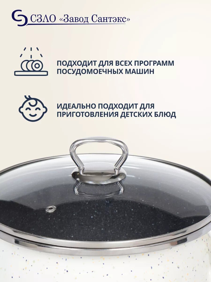 - Универсальность: подходит для всех типов плит, включая индукцию, и легко моется в посудомоечной машине