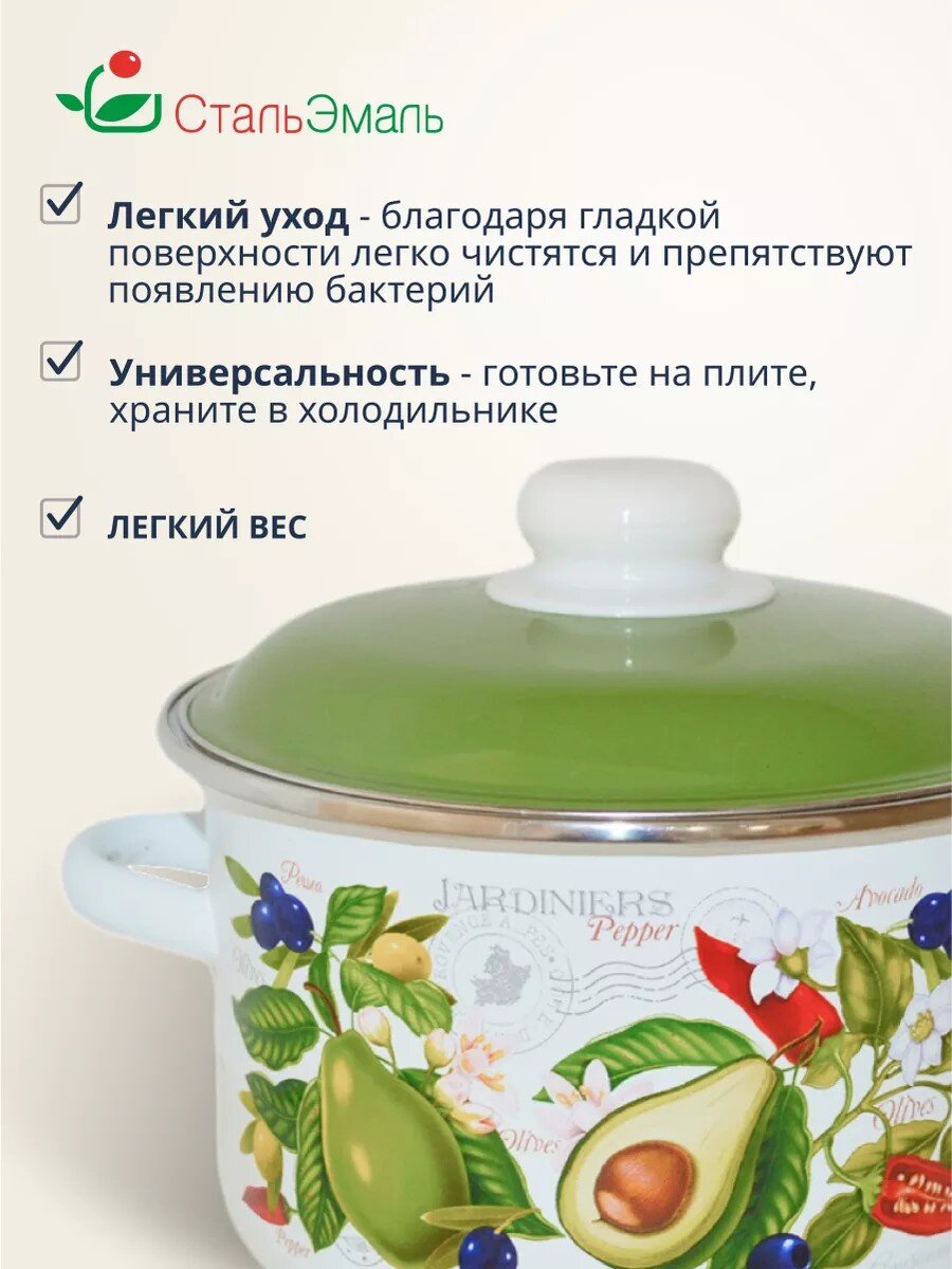 Кастрюля эмалированная СтальЭмаль Авокадо 5.5 л: долговечная сталь, подходит для индукции и посудомоечной машины. Лучший выбор для семьи и дачи.