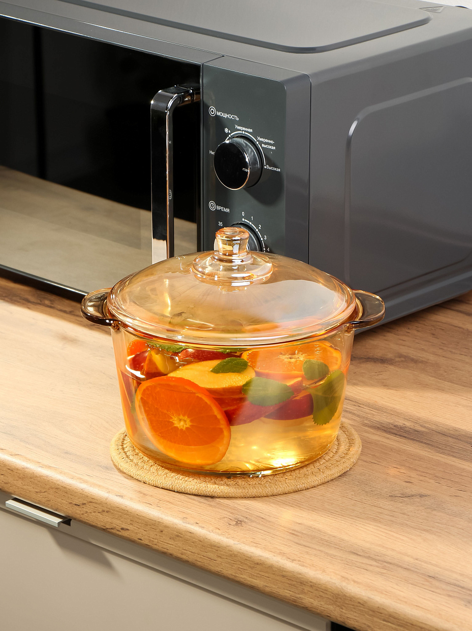 Стеклянная кастрюля для микроволновки 2.5 л с крышкой: готовьте супы, каши и макароны без хлопот — безопасно, быстро и без лишних запахов.