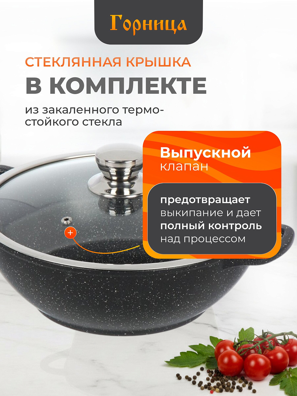 - Толстые стенки и дно обеспечивают равномерное приготовление блюда.