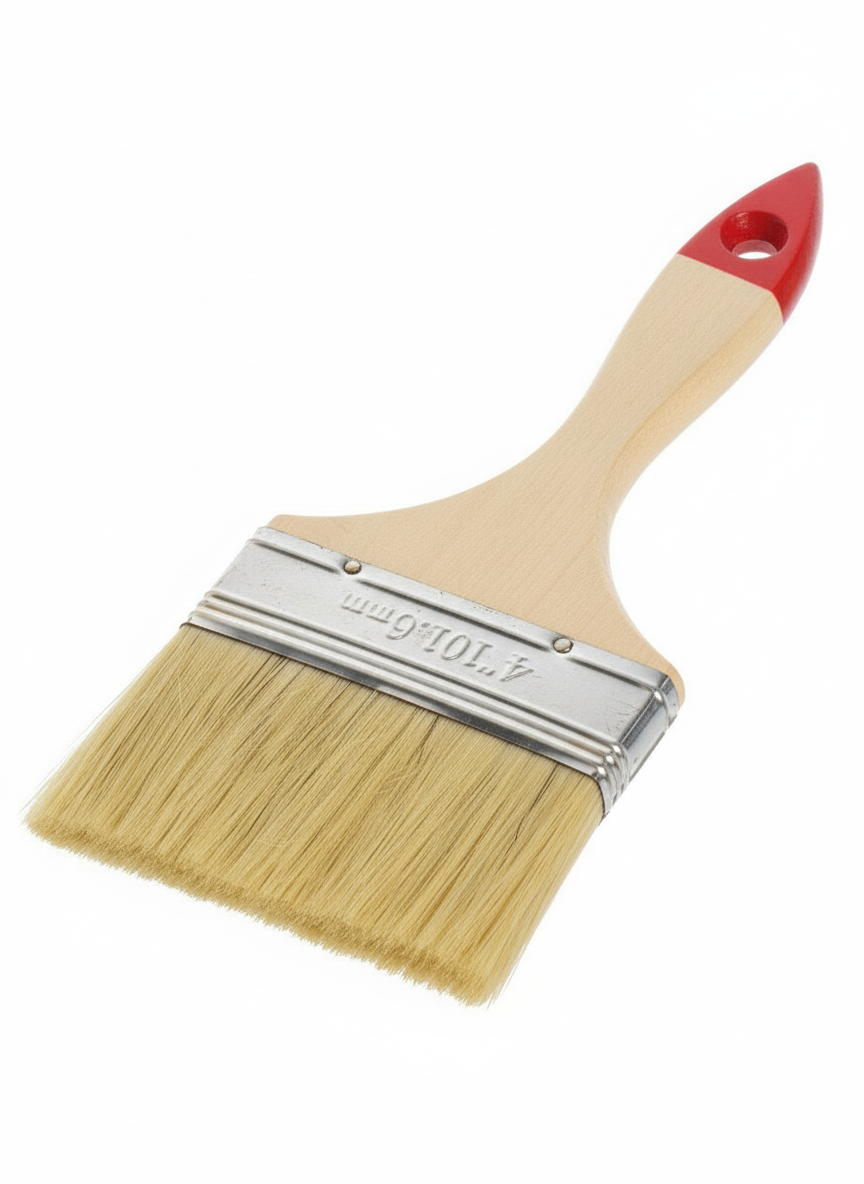 Кисть — это один из самых распространенных инструментов для покраски. Она имеет следующее устройство: ворс (натуральный или искусственный) закрепленный на ручке. Щетина кисти надежно зафиксирована металлическим бандажом с антикоррозийным покрытием. Деревянная лакированная ручка с отверстием для подвешивания имеет эргономичную форму, которая делает работу комфортной.