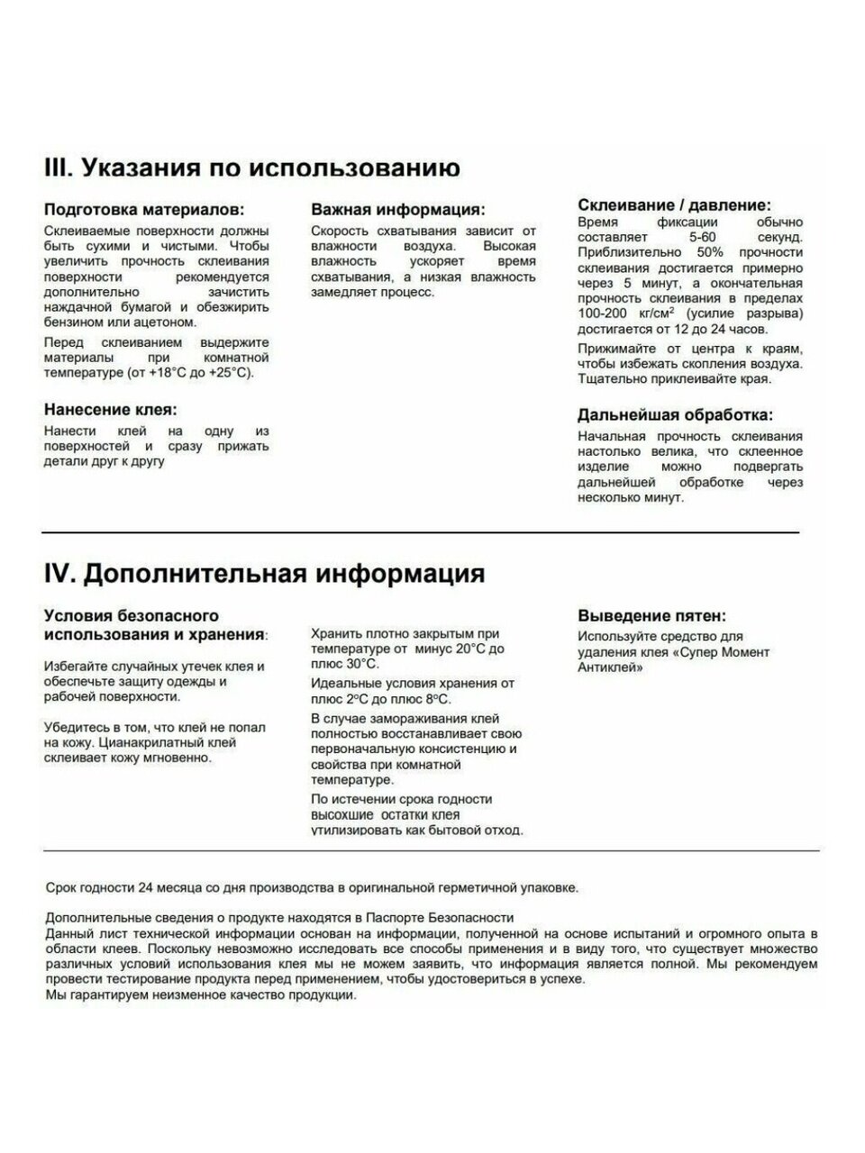 Осторожно: склеивает мгновенно! Пары клея не вдыхать. Работы проводить в хорошо проветриваемых помещениях. Беречь от детей. В случае попадания на кожу рук или в глаза немедленно промыть большим количеством воды, и при необходимости проконсультироваться у врача.