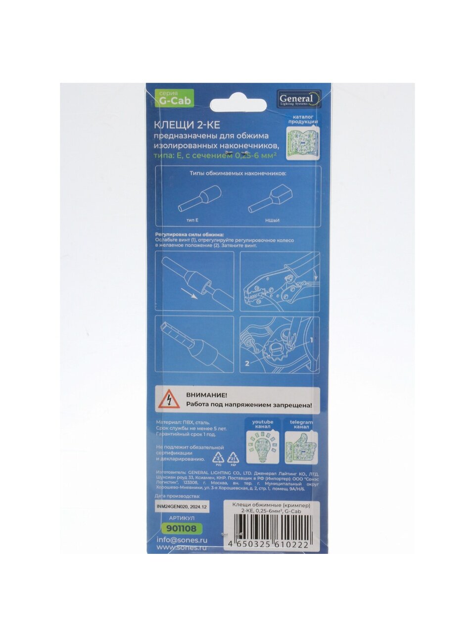 Клещи обжимные (кримпер) 2-КЕ, G-Cab от General Lighting Systems — это инструмент для быстрой и надёжной опрессовки проводов и наконечников в диапазоне 0,25-6 мм². Благодаря эргономичной пластиковой рукоятке и продуманной конструкции, кримпер обеспечивает минимальные усилия при обжиме, снижая усталость рук. Часто спрашивают: «Как выбрать кримпер для электромонтажа?» — модель 2-КЕ идеально подходит для электриков, автолюбителей и домашних мастеров, кто ценит точность и долговечность.
