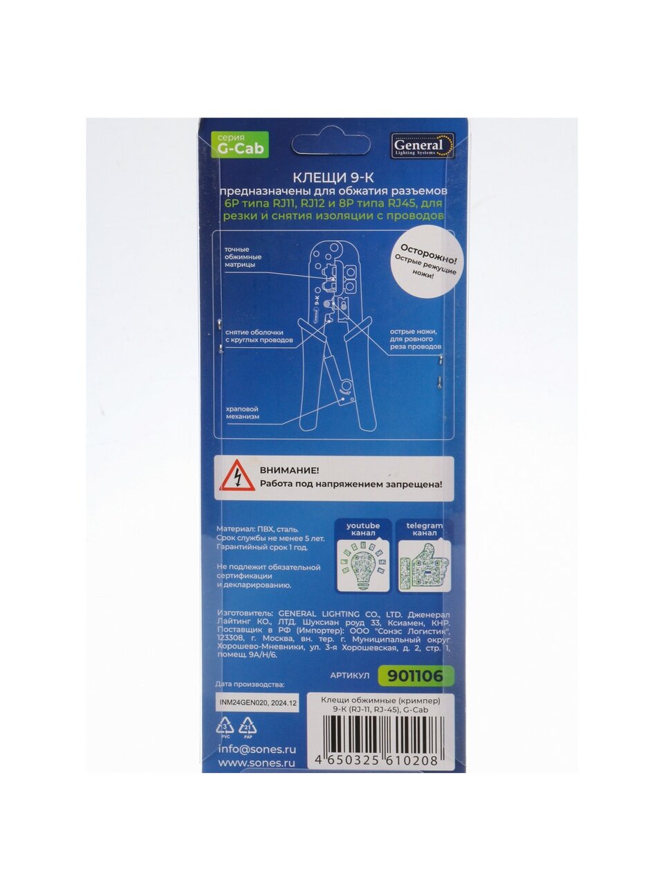 Клещи обжимные General Lighting Systems 9-К: идеальный кримпер для RJ-11 и RJ-45 — быстрое подключение, надежный результат, экономия времени и бюджета.