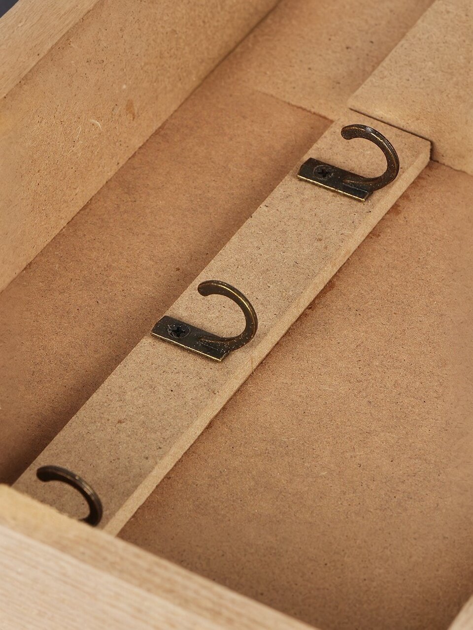 - Оптимальные размеры (25.5×19×5.8 см), прочный МДФ и металлические крючки — долговечность и надежность хранения;