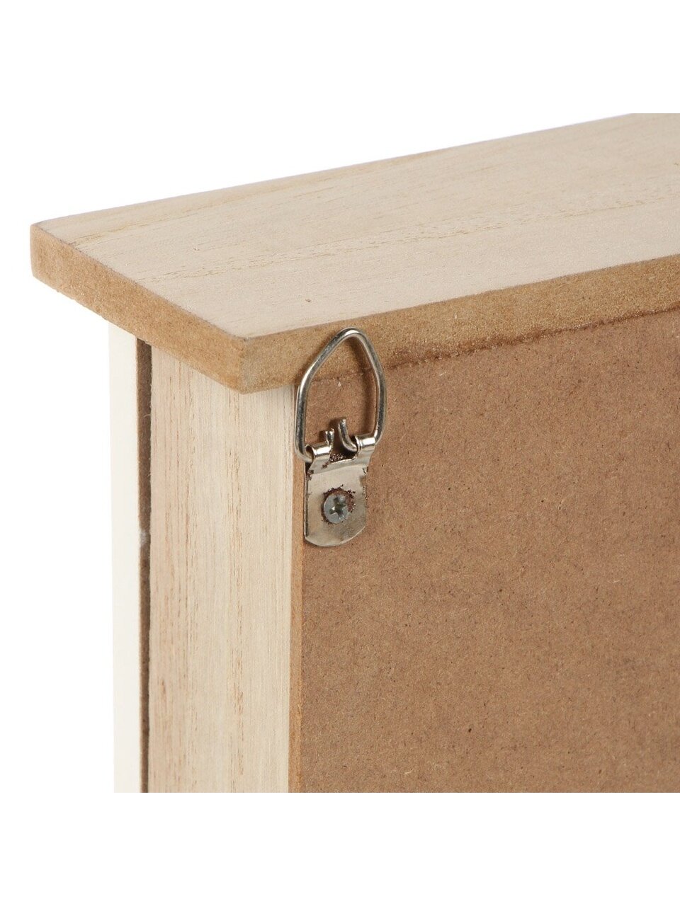 Размеры: 25.5×19×5.8 см. Ключница рассчитана на 5 связок ключей, металлические крючки выдерживают стандартную нагрузку для бытового использования.