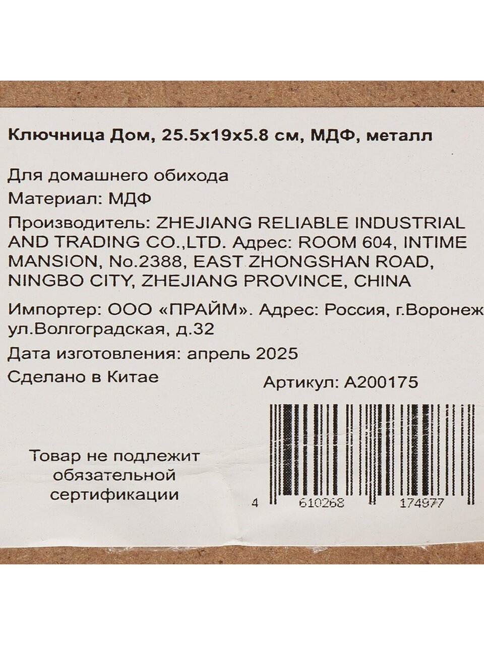 Вы можете приобрести «Ключница Дом, 19.5х25.5х5.8 см, МДФ, металл, 5 крючков, A200175» и другие товары в нашем интернет-магазине в Липецке по низким ценам и с бесплатным самовывозом.