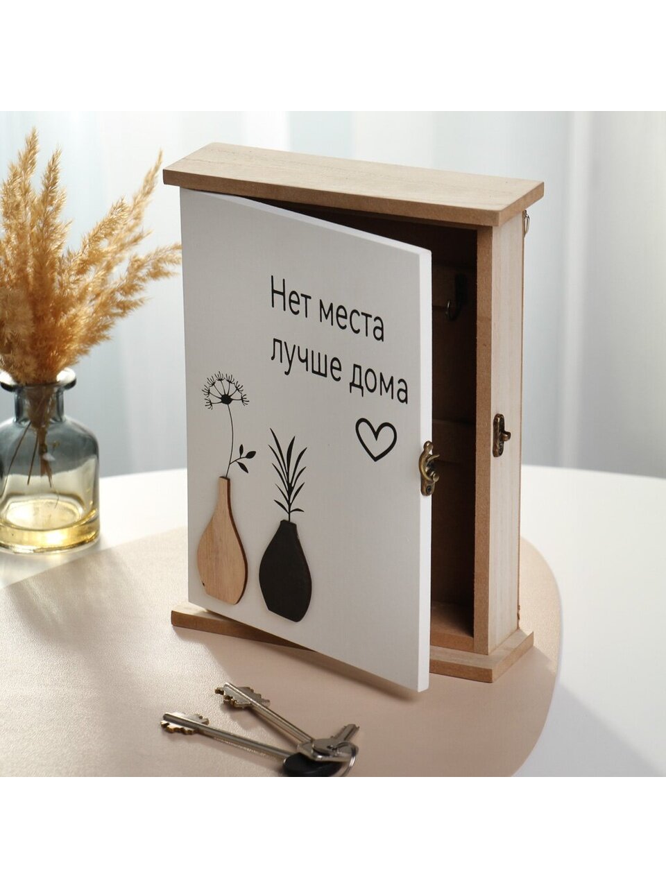 Если вы ищете, какую ключницу купить недорого для дачи или квартиры, обратите внимание на эту модель: она компактна, легко крепится к стене и не занимает много места. В отличие от пластиковых аналогов, МДФ не деформируется со временем, а белый цвет универсален для любого интерьера.