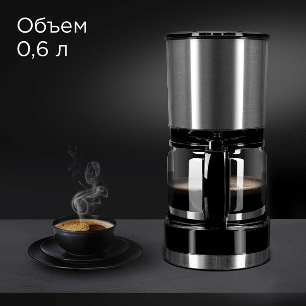 Кофеварка рассчитана на 0,6 литра, что позволяет приготовить 5-6 стандартных чашек кофе за один цикл. Это оптимально для семьи или небольшой компании.