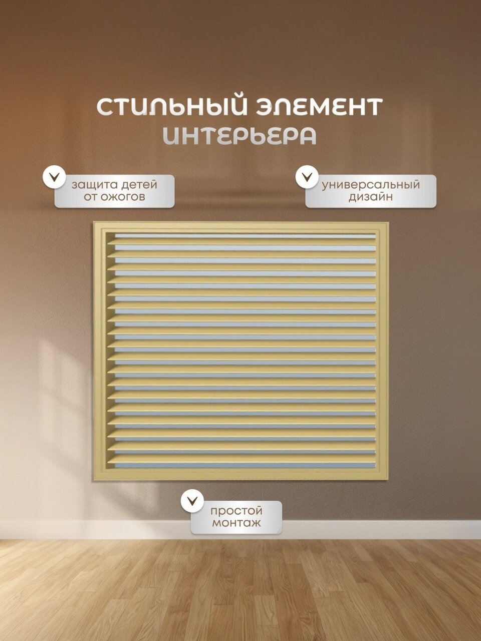 Радиаторная решетка позволяет закрыть ниши с батареями отопления, когда их внешний вид не вписывается в созданный интерьер. При этом теплый воздух будет беспрепятственно поступать в помещение через достаточное количество отверстий в жалюзи.
