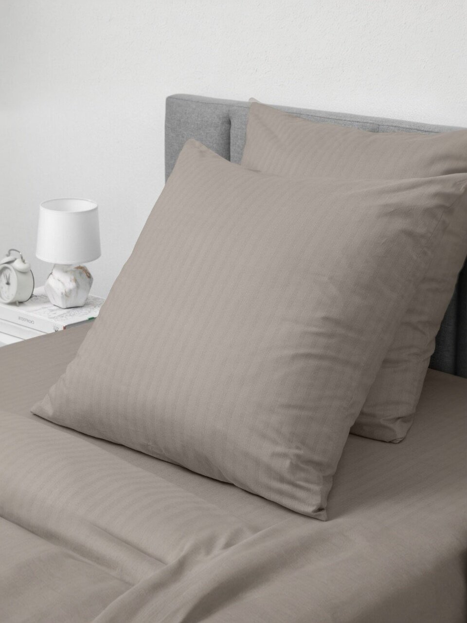 Комплект полностью из хлопка страйп-ранфорс — это натуральная ткань с плотным переплетением, устойчива к износу и сохраняет мягкость даже после частых стирок.