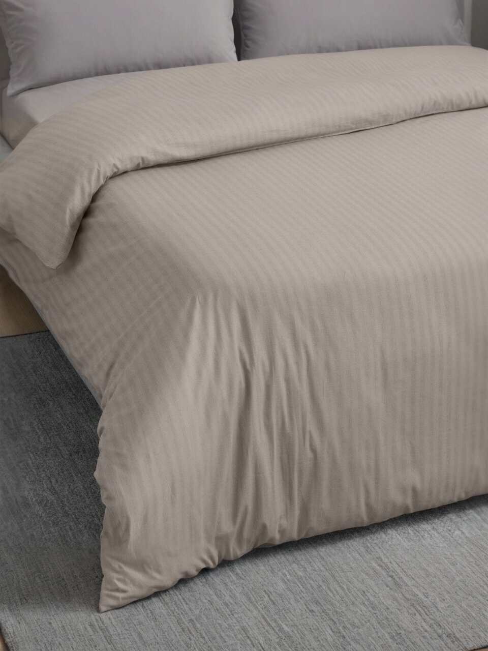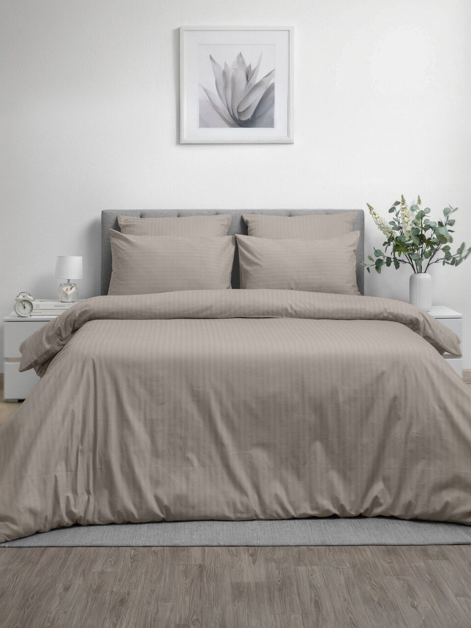 - Стильный комплект Coffee cream — премиальный страйп-ранфорс, долговечность и мягкость после каждой стирки