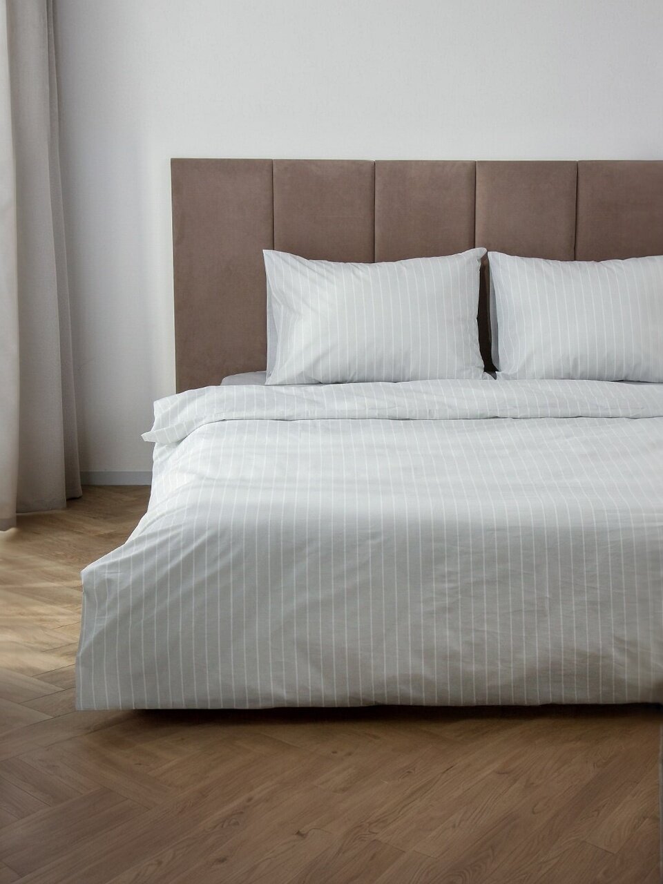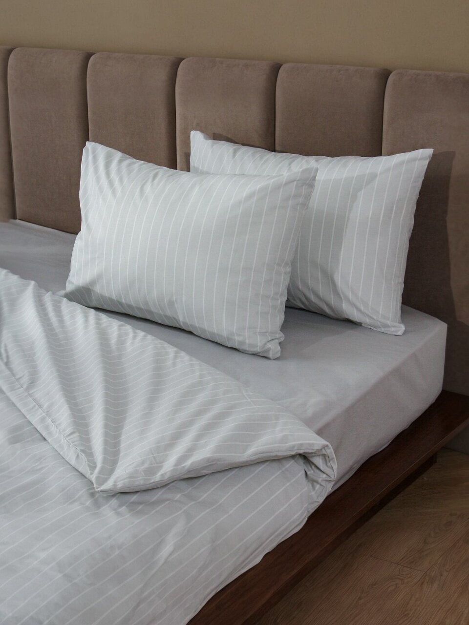 Постельное бельё 2-спальное Silvano 20465 — идеальный выбор для комфортного сна: 100% хлопок-поплин, стильный серый с полосками, подарочная упаковка.
