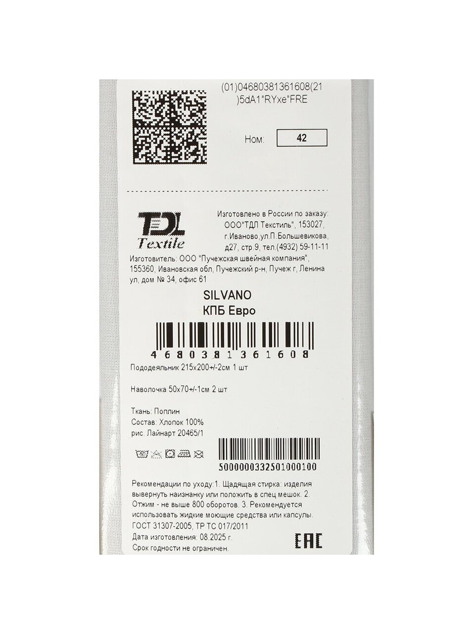 Постельное белье евро, 2 наволочки 50х70 см, пододеяльник 200х215 см, Silvano, поплин, 20465