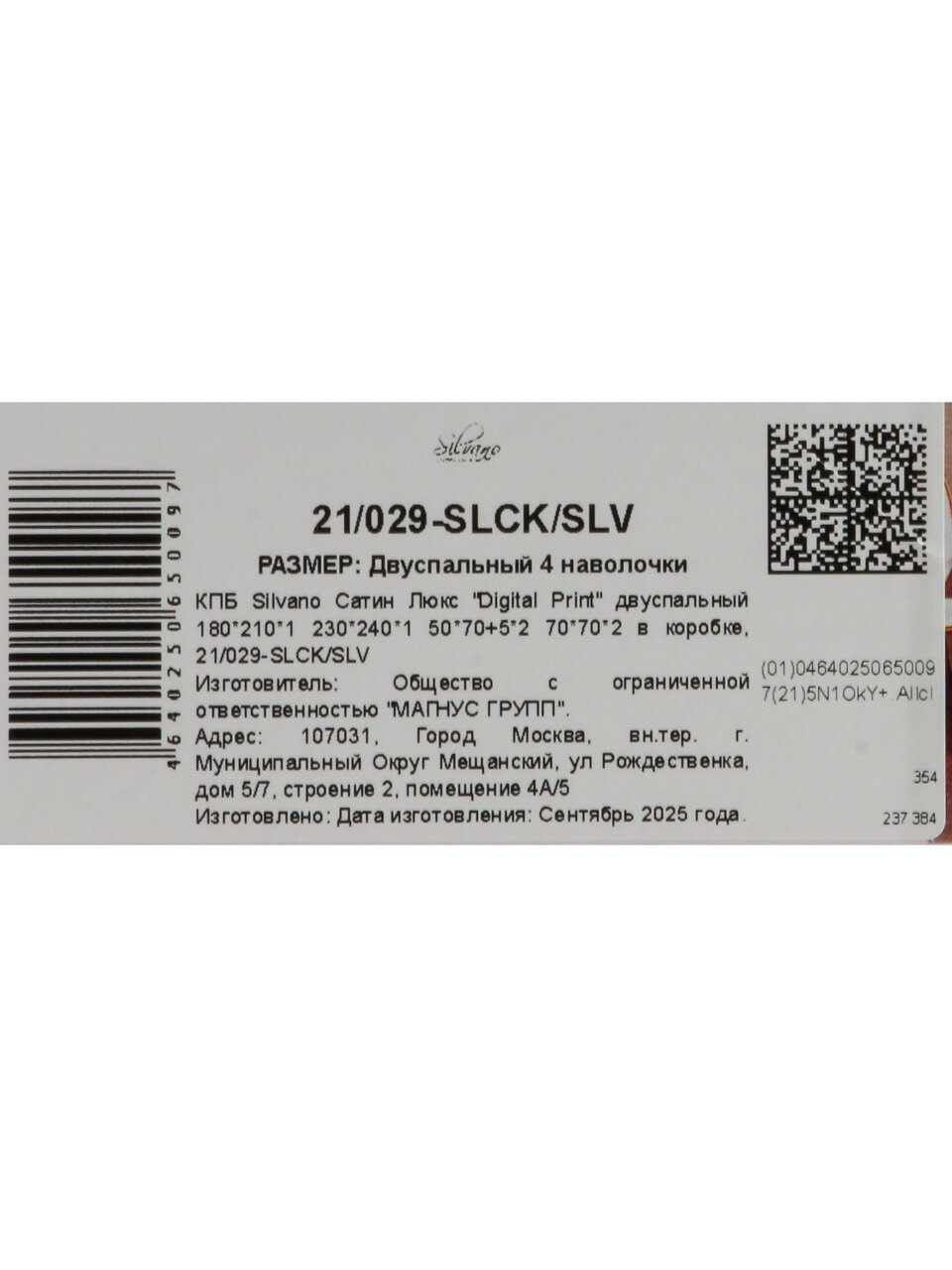 Постельное белье 2-спальное, простыня 230х240 см, 2 наволочки 70х70 см, 2 наволочки 50х70 см, пододеяльник 180х210 см, Silvano, сатин люкс, подарочная упаковка, 21/029-SLCK/SLV - фото 1 от пользователя