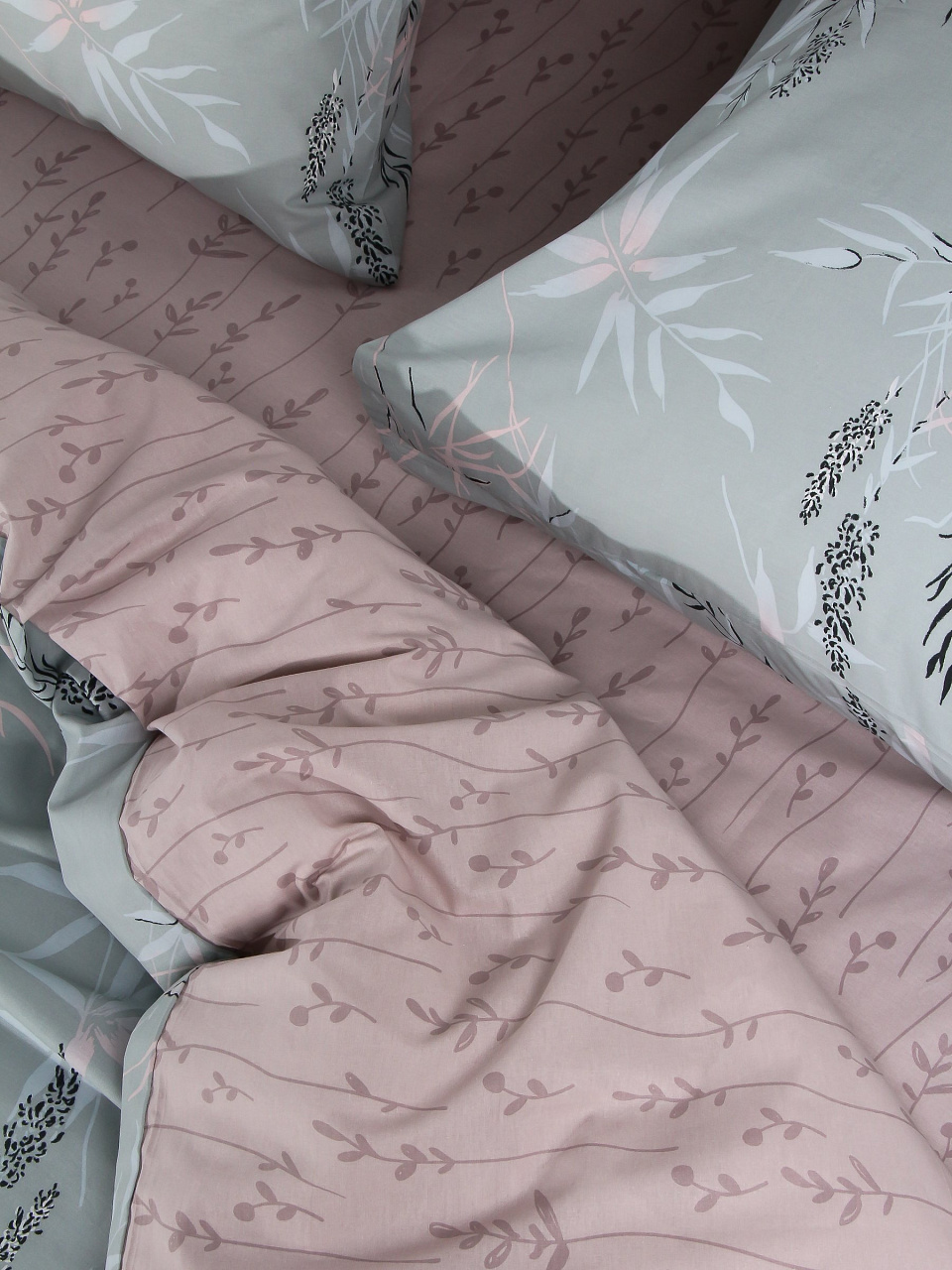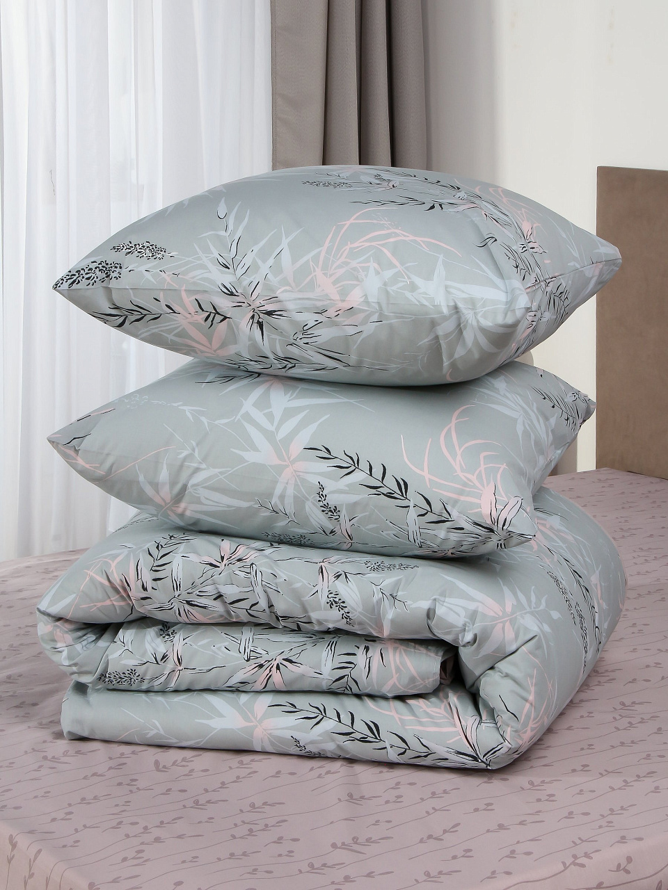 В комплект входит пододеяльник 215х240 см, две простыни 145х215 см и две наволочки 70х70 см — подходит для большинства семейных и двуспальных кроватей.