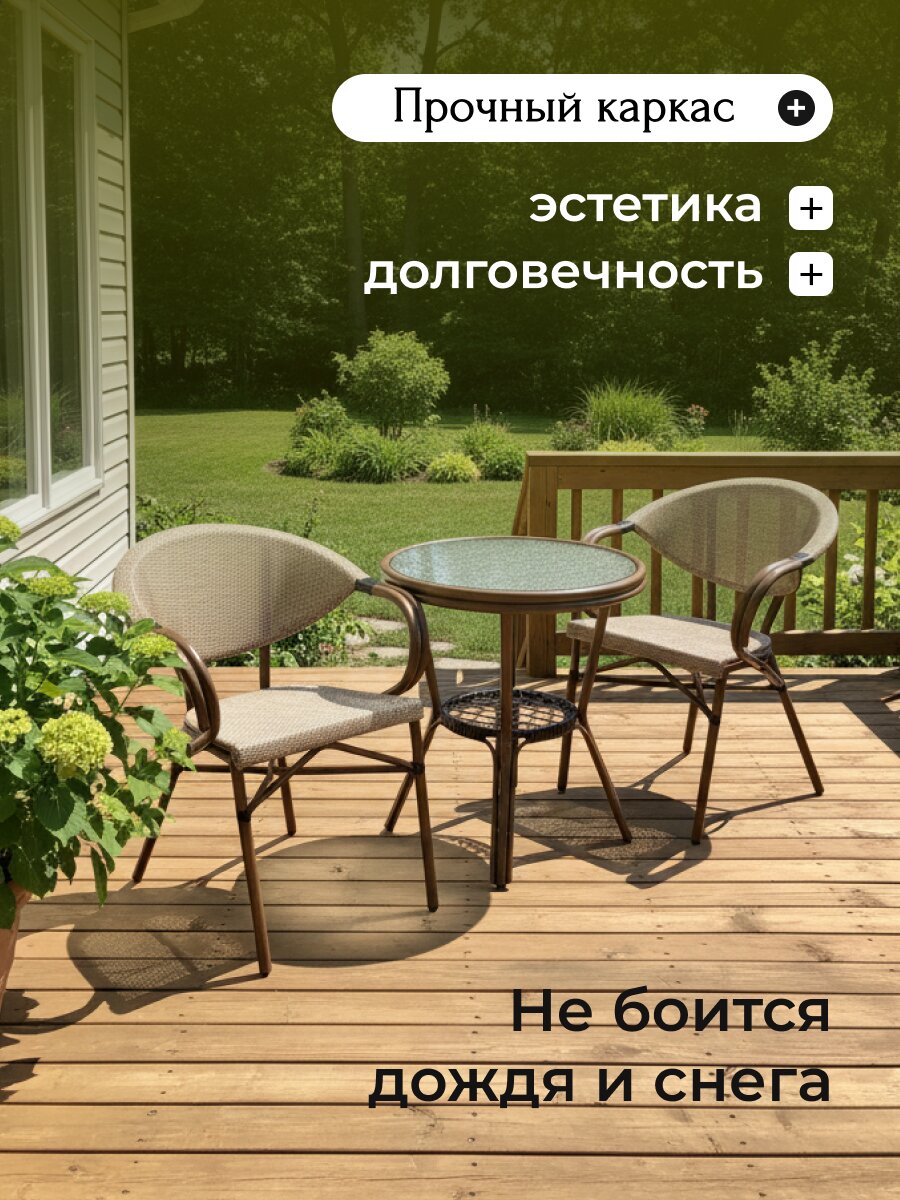 Мебель садовая Бланка — гармоничное сочетание стиля, удобства и практичности для создания уютной атмосферы на даче или в саду. Комплект включает стол размером 60х60х70 см и два стула 56х60х78 см, что делает его отличным решением для организации комфортного отдыха на свежем воздухе. Благодаря современному дизайну и функциональности, такой комплект мебели органично впишется в любой ландшафт, подчеркнув индивидуальность пространства и создавая приятное место для встреч с близкими, семейных ужинов или утреннего чаепития.