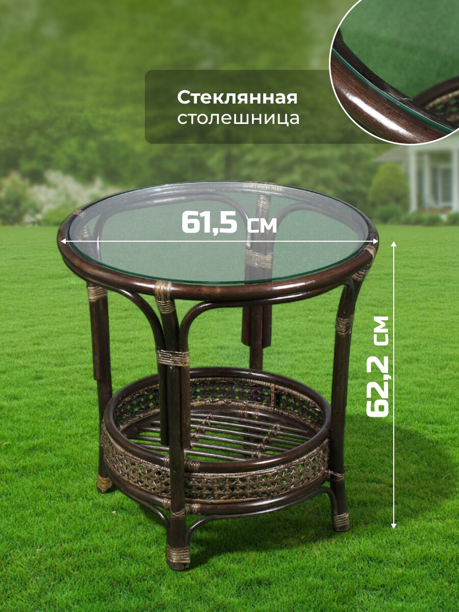 Плетеная мебель — это неповторимый стиль и уютная атмосфера, создающая умиротворенность и расслабленность. Лоза ротанга чарует своей невероятной теплотой и декоративностью. Легкое ажурное переплетение ротанга и прозрачная стеклянная столешница придают мебели невесомый, воздушный вид.