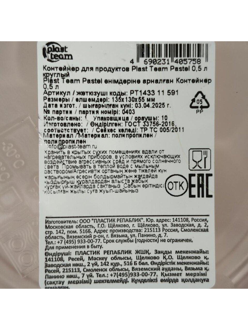 Вы можете приобрести «Контейнер пищевой пластик, 0.5 л, 13.5х13х5.5 см, круглый, Plast team, Pastel, PT143311591» и другие товары в нашем интернет-магазине в Старом Осколе по низким ценам и с бесплатным самовывозом.