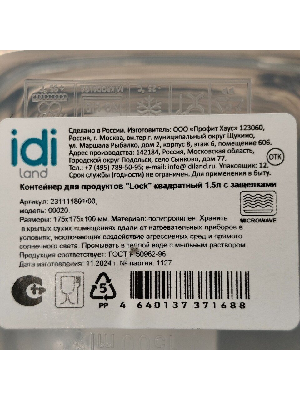 Сделайте заказ на контейнер для продуктов IDIland Lock 1.5 л — выгодная цена, быстрая доставка, гарантия свежести и удобства хранения. Оформите покупку прямо сейчас!