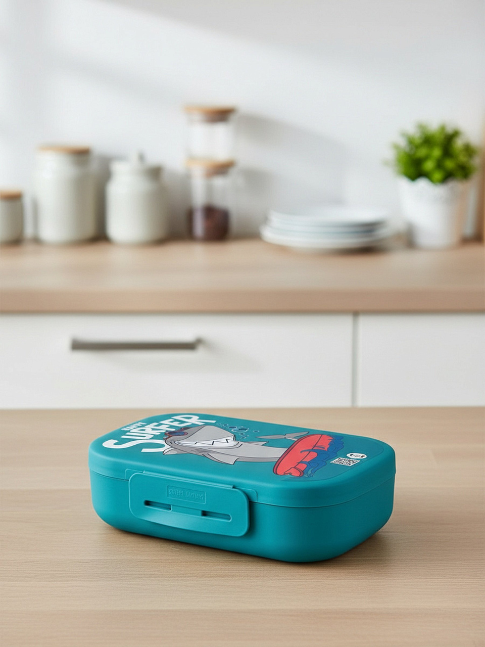 - Яркий ланч-бокс с принтом «Акула» — выделяется среди стандартных контейнеров, радует детей и взрослых