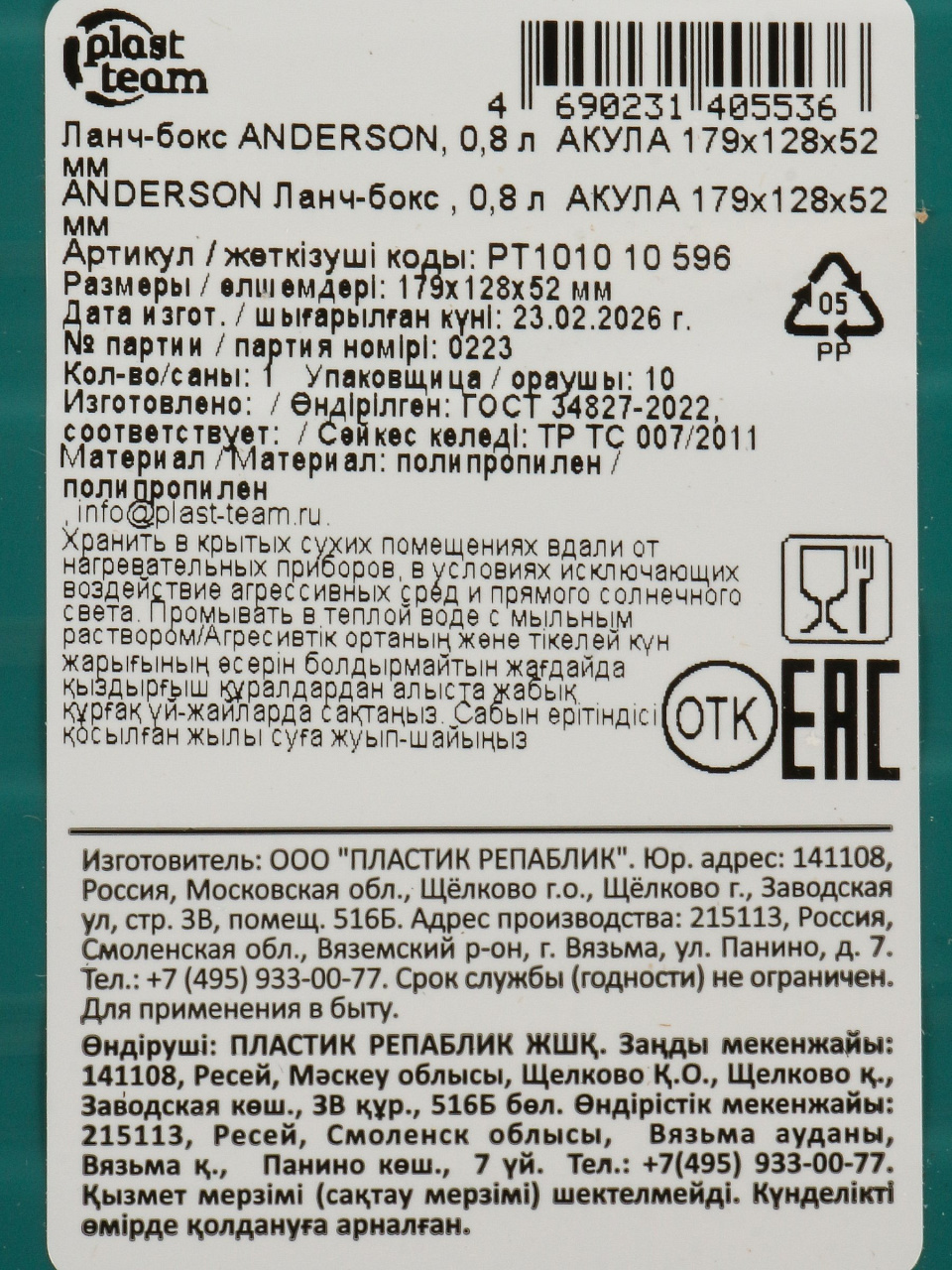 Вы можете приобрести «Контейнер пластик, 0.8 л, 17.9х12.8х5.2 см, прямоугольный, Plast team, Anderson, Акула, PT101010596» и другие товары в нашем интернет-магазине в Ярославле по низким ценам и с бесплатным самовывозом.