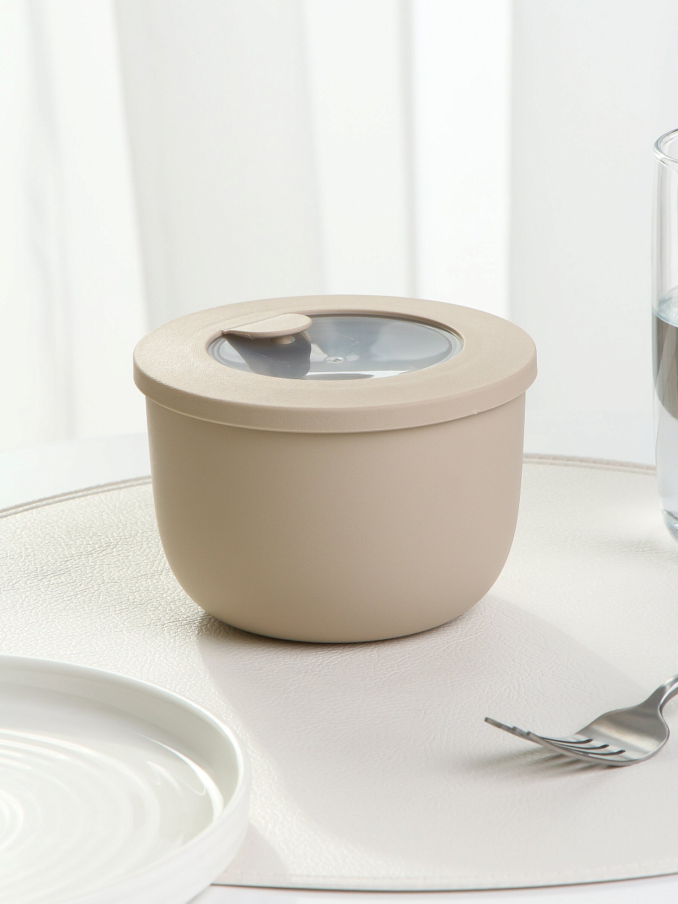 Герметичная круглая миска Idea Нео 0.6 л: удобное хранение и переноска еды дома, на даче, в офисе. Прочный пластик, клапан для СВЧ, стиль «латте».