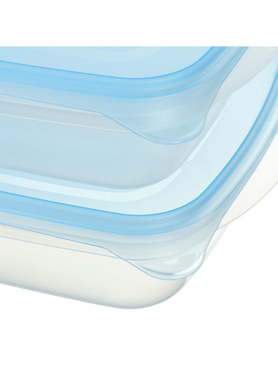 В наборе 3 прямоугольных контейнера объёмом по 0.7 л каждый. Цвета в ассортименте, крышки также пластиковые.