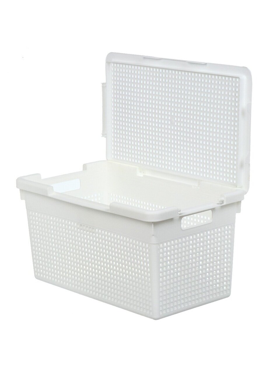 Вы можете приобрести «Корзина для хранения, 21 л, 45х26х24 см, прямоугольная, пластик, белая, с крышкой, Violet, Лофт, 562106» и другие товары в нашем интернет-магазине в Тамбове по низким ценам и с бесплатным самовывозом.