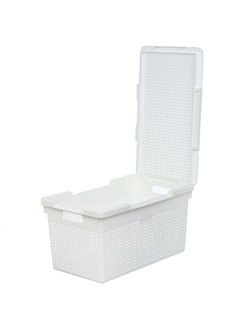- Размеры ящика и устойчивая крышка позволяют поставить несколько корзин одну на другую.
