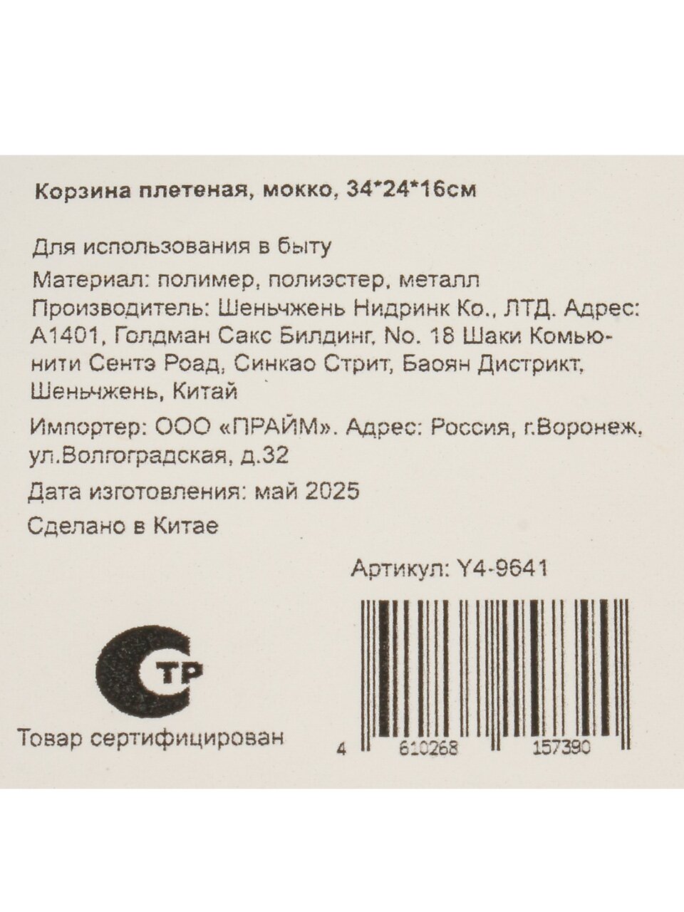 Корзина плетеная, мокко, 34*24*16CM, Y4-9641