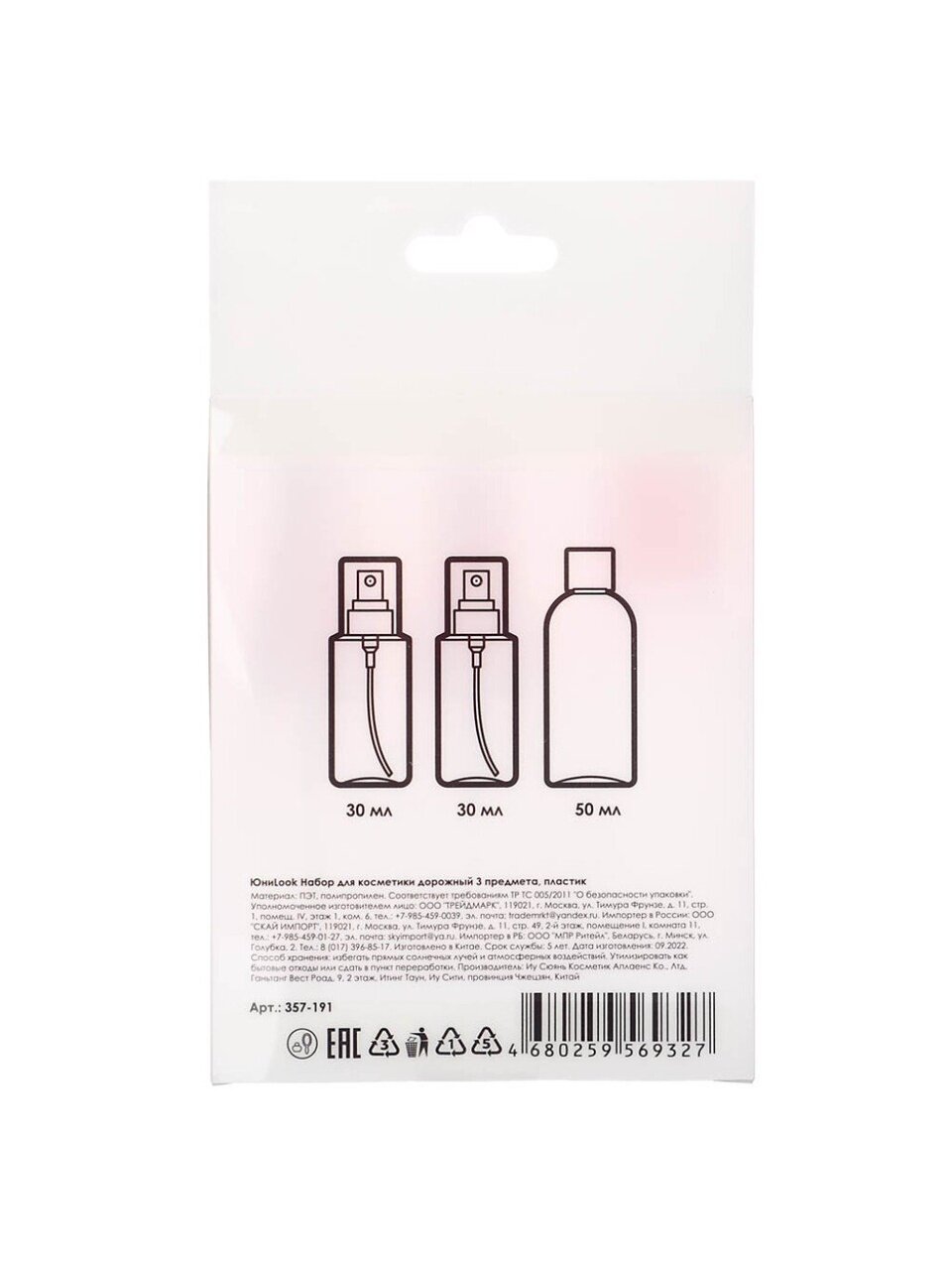 Вы можете приобрести «Набор для косметики дорожный 3 предмета, пластик, 2 цвета, ЮниLook, 357-191, в ассортименте» и другие товары в нашем интернет-магазине в Брянске по низким ценам и с бесплатным самовывозом.