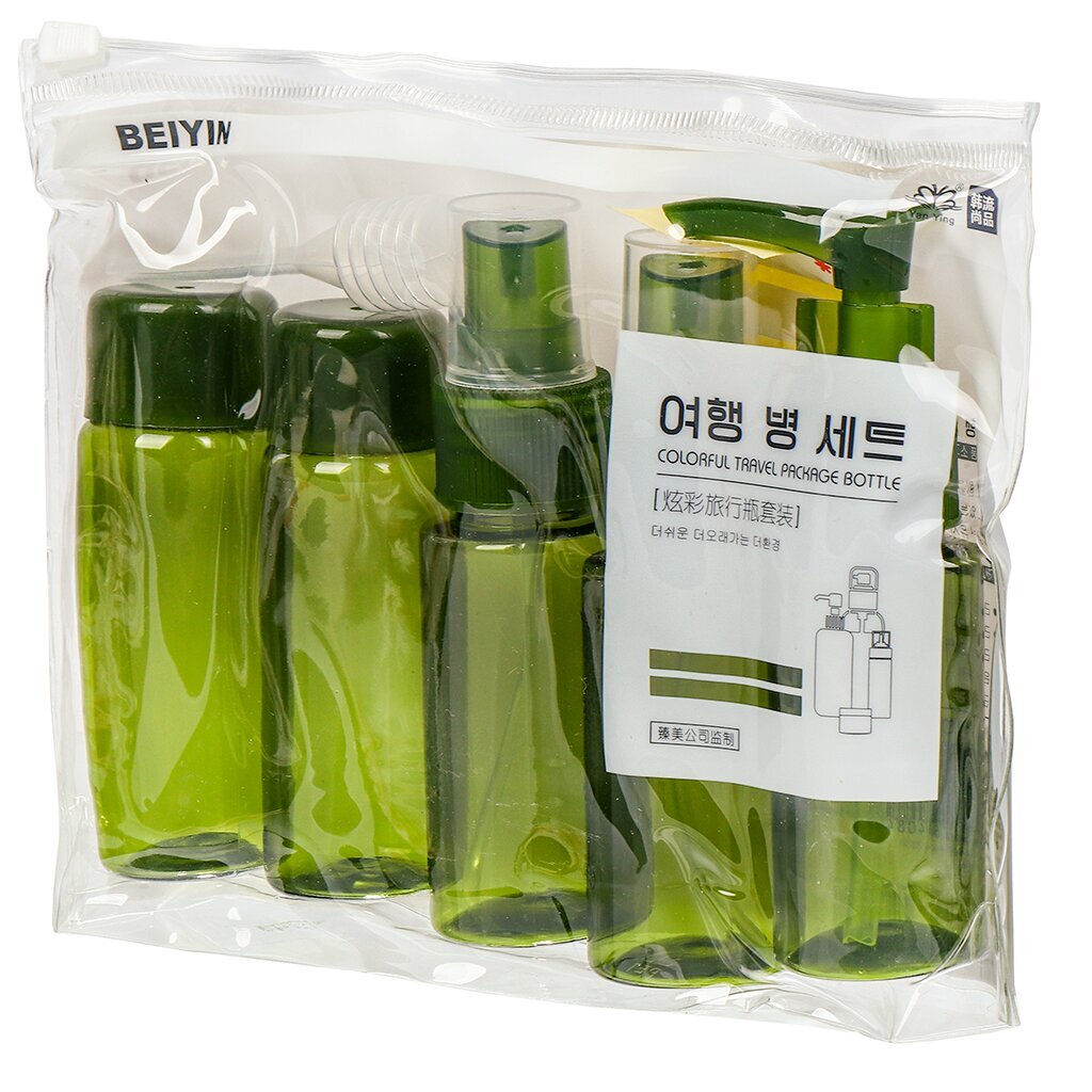 Удобный дорожный набор бутылочек для косметических средств предназначен для хранения шампуней, гелей для душа, бальзамов, тоников, лосьонов. Флаконы выполнены из пластика, компактны и практичны в использовании.