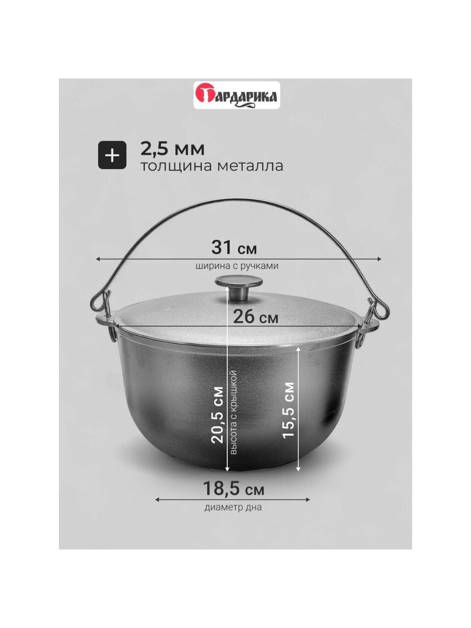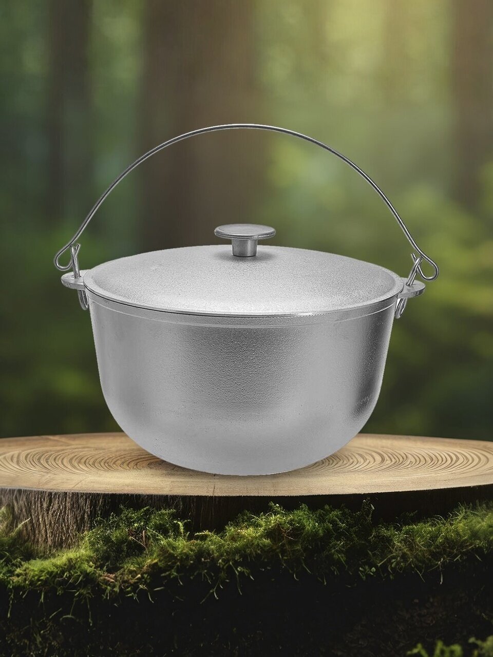 Взять с собой алюминиевый казан в поход намного удобнее и легче, чем тяжелую посуду из чугуна. Котелок Гардарика идеален для приготовления пищи на охоте, рыбалке и в лесу. Он пригоден как для профессионального, так и для индивидуального использования. Корпус котла с плоским дном позволяет использовать его как в походных, так и в домашних условиях на газовых и электрических плитах.