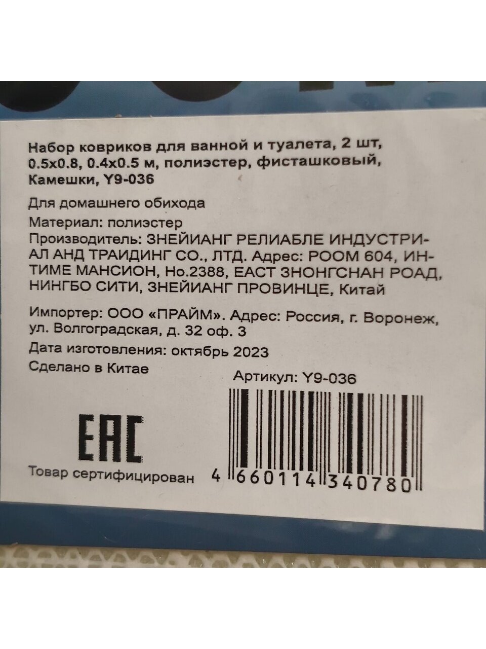 Вы можете приобрести «Набор ковриков для ванной и туалета, 2 шт, 0.5х0.8, 0.4х0.5 м, полиэстер, фисташковый, Камешки, Y9-036» и другие товары в нашем интернет-магазине в Курске по низким ценам и с бесплатным самовывозом.