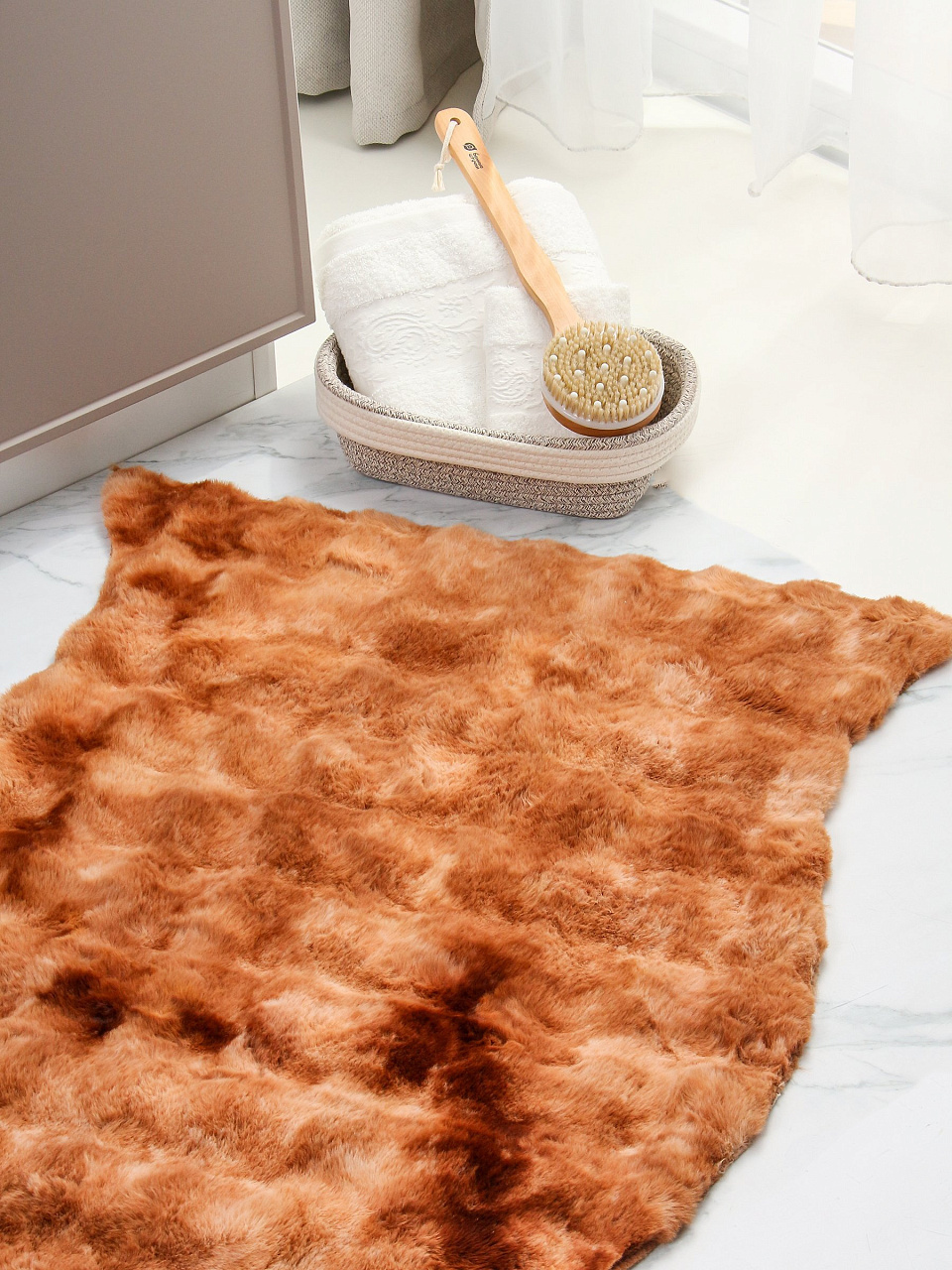 Коврик интерьерный 0.8х1.2 м, Silvano, фигурный, бежево-коричневый, искусственный мех, Y4-11722