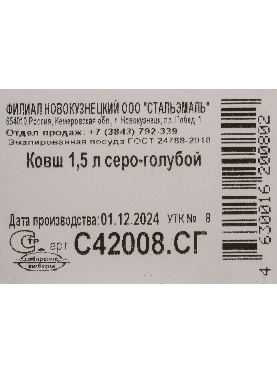 Вы можете приобрести «Ковш сталь, эмалированное покрытие, 1.5 л, стальная ручка, индукция, Сибирские товары, С42008.СГ, серо-голубой» и другие товары в нашем интернет-магазине в Белгороде по низким ценам и с бесплатным самовывозом.