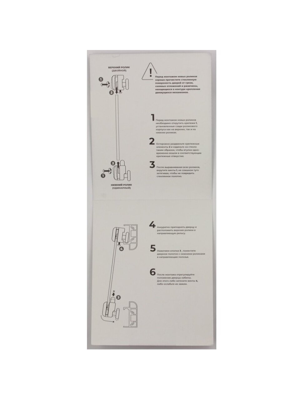 Комплект двойных сменных натяжных роликов с регулировочным винтом по высоте и два одинарных подпружиненных нижних роликов для душевой кабины.