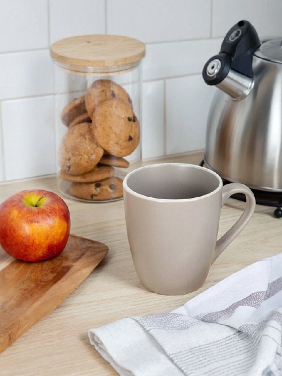 Объём — 355 мл, материал — керамика, цвет — бежевый, модель — Scandy Cappuccino, бренд — Domenik. Кружка не комплектуется крышкой, ситечком, ложкой или трубочкой.