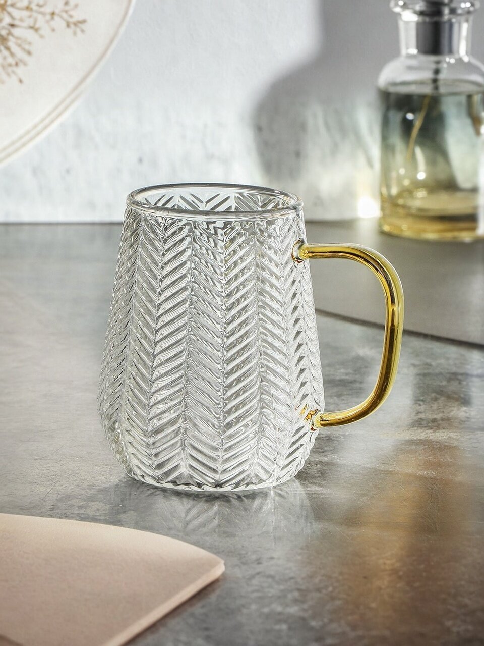 Откройте для себя изысканность и стиль с кружкой из стекла объемом 350 мл, модель "Плетение", с утонченной золотой ручкой. Этот аксессуар станет не только функциональным элементом вашей кухни, но и настоящим украшением интерьера.