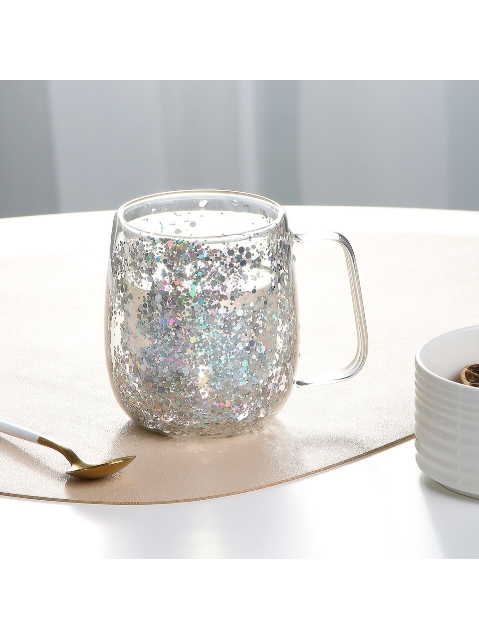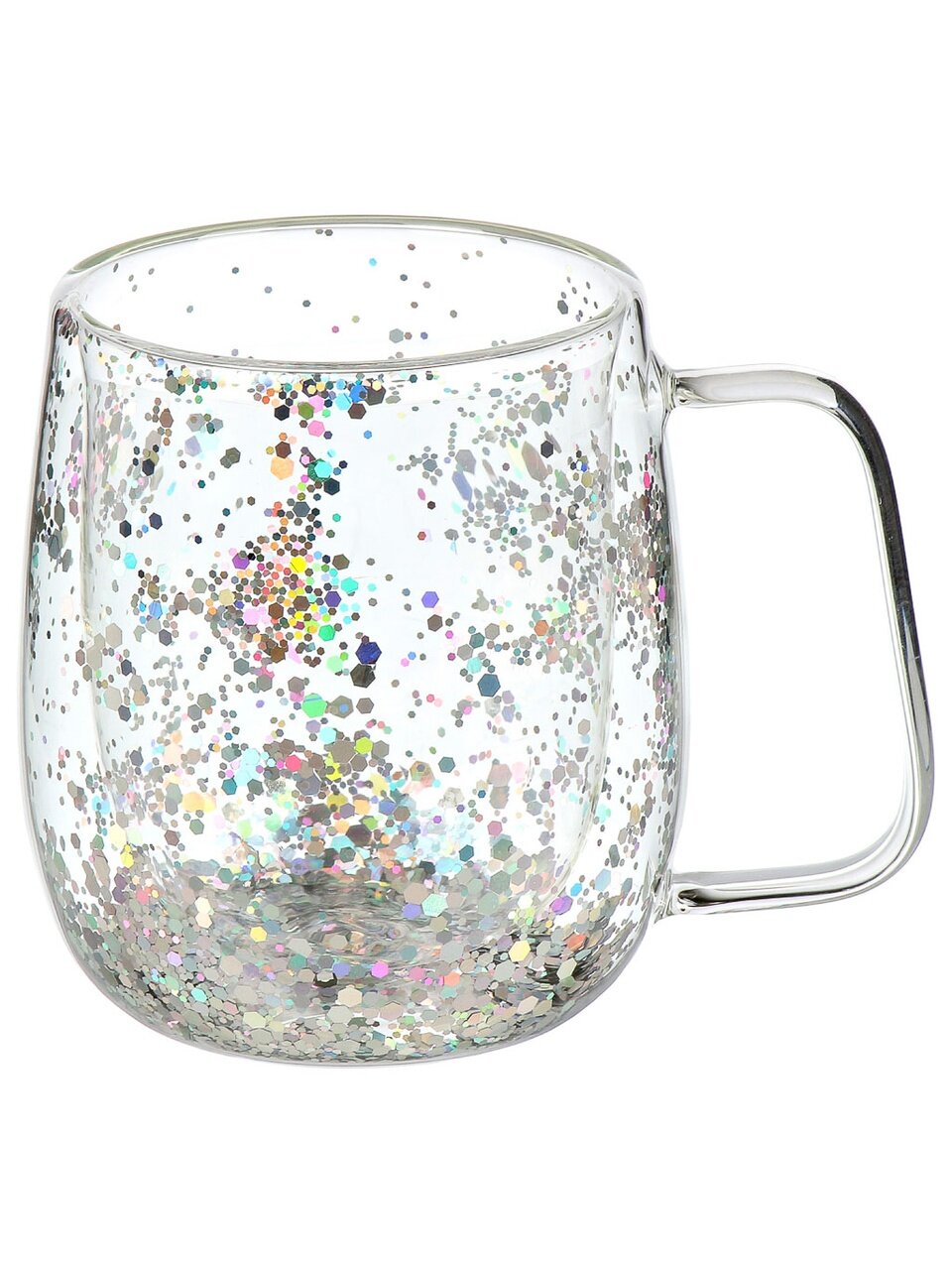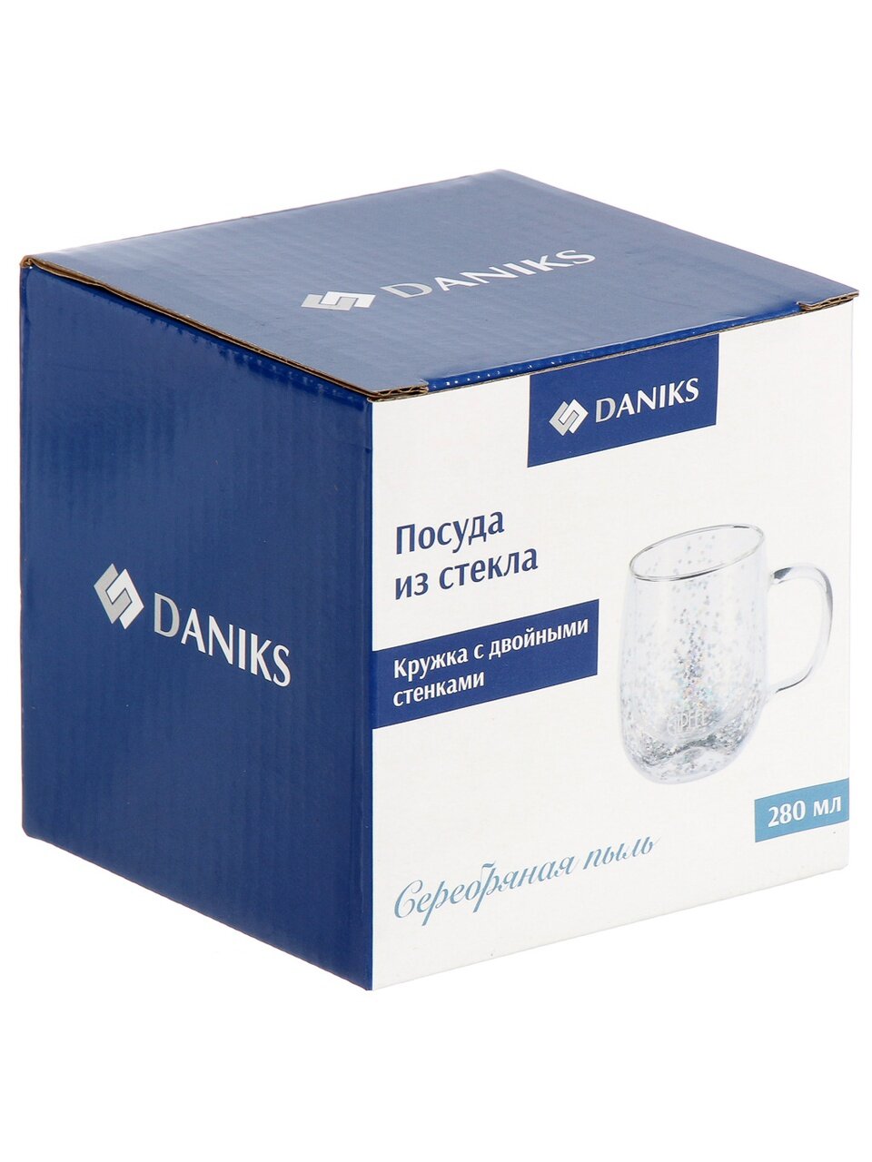 Кружка стекло, 280 мл, Серебряная пыль, двойные стенки, Daniks