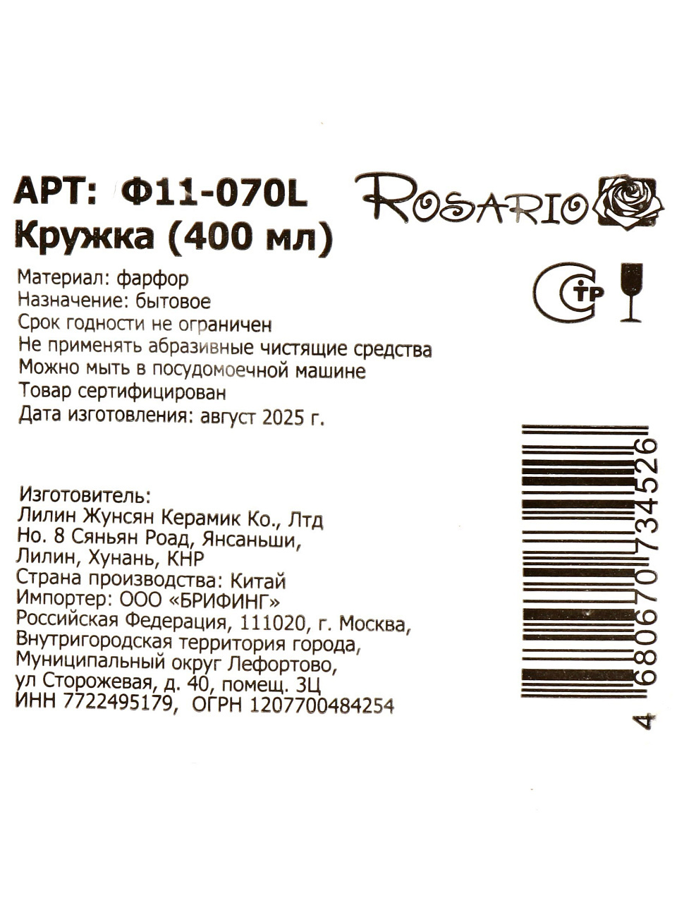 Добавьте Rosario Daily в корзину — оцените выгодную цену, быструю доставку и гарантию оригинального качества. Универсальная керамическая кружка станет вашим надежным спутником на каждый день.