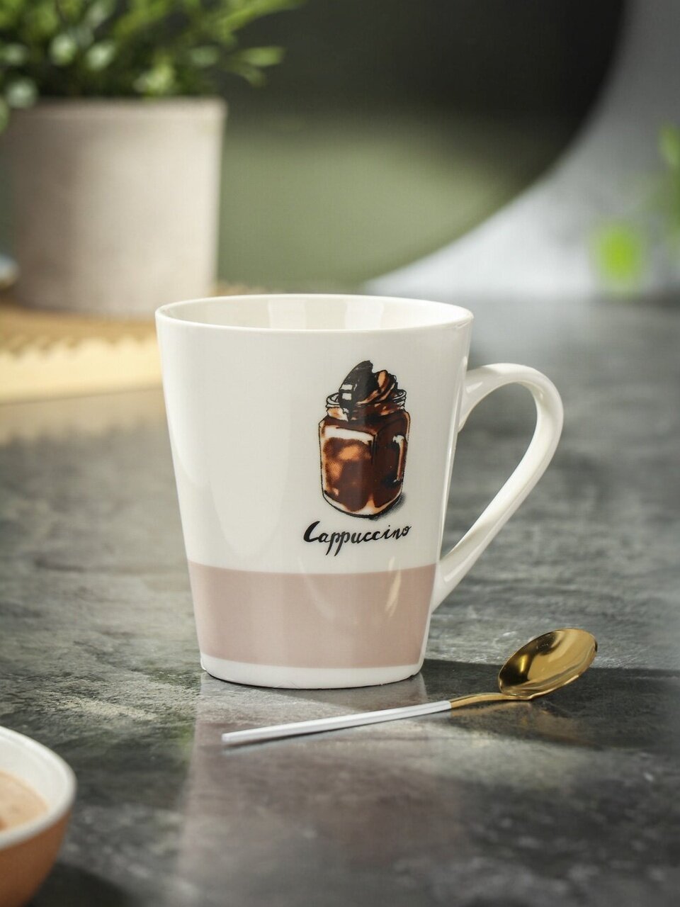 Керамическая кружка 330 мл «Моккачино» — универсальный выбор для дома и офиса: стильный дизайн, подходит для СВЧ и посудомойки, ассортимент цветов.